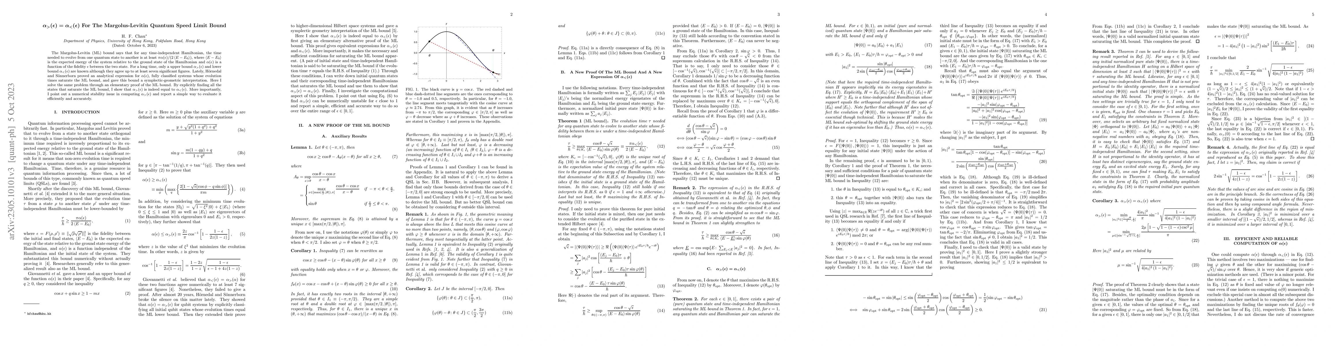 The research presents an elementary proof of the Margolus-Levitin (ML) bound, identifying all states that saturate the bound and demonstrating that the upper bound \(\alpha_{>}(ε)\) equals the lower bound \(\alpha_{<}(ε)\).