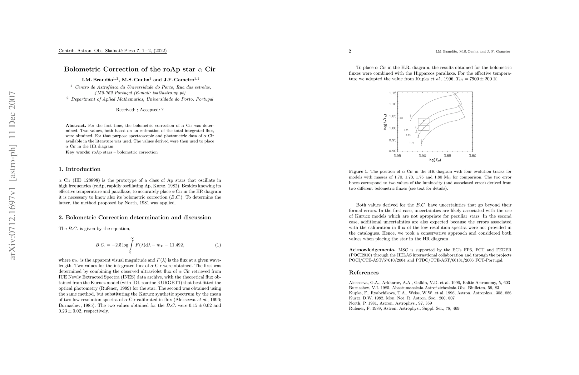 This study determined the bolometric correction for the roAp star $\alpha$ Cir for the first time, using spectroscopic and photometric data. The derived values were applied to place $\alpha$ Cir accurately in the HR diagram.