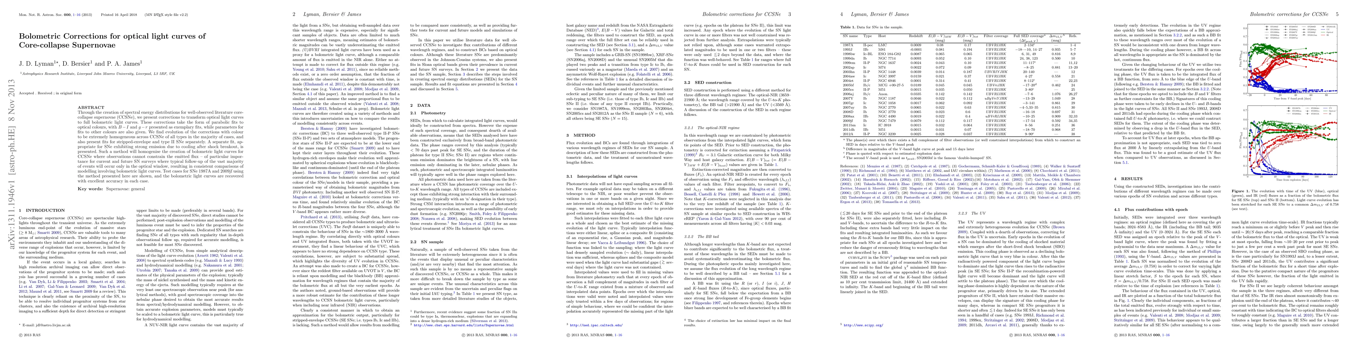 This paper presents parabolic fits to transform optical light curves into bolometric light curves for core-collapse supernovae (CCSNe), using spectral energy distributions. The method is shown to be highly consistent across different CCSNe types and is particularly useful for surveys where only optical observations are available.