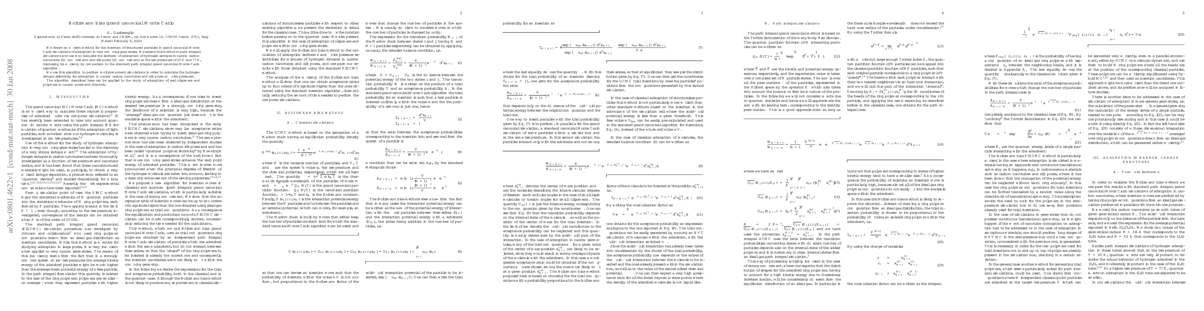 This paper proposes a Boltzmann bias grand canonical Monte Carlo method for efficiently simulating the adsorption of structured particles in confined spaces, extending it to path integral simulations. The method is applied to calculate hydrogen isotope adsorption isotherms in carbon nanotubes and slit pores, demonstrating improved efficiency over standard algorithms and enabling multicomponent simulations for adsorption selectivity.