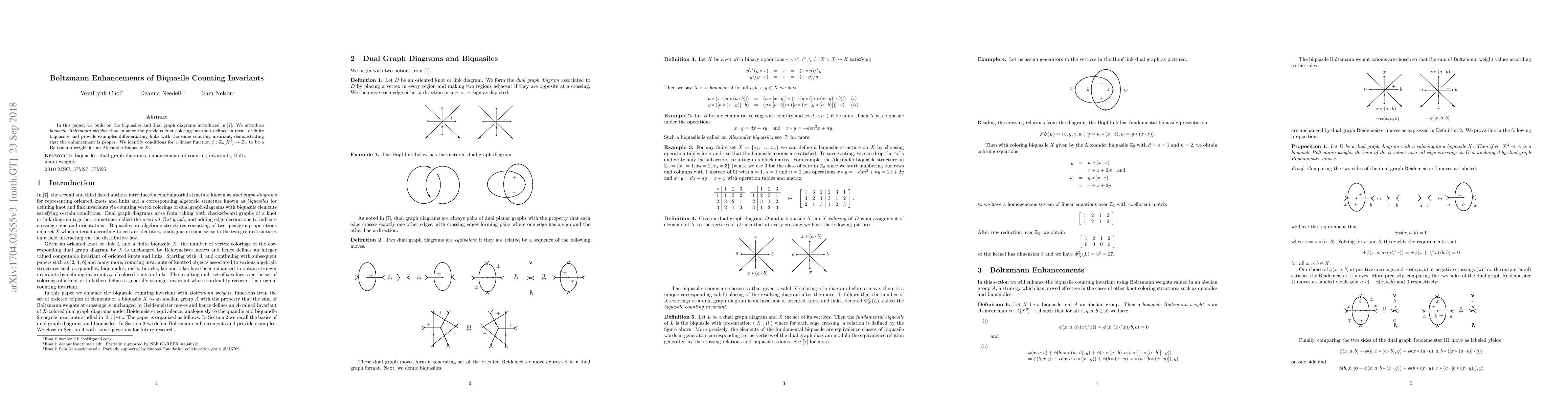 This paper introduces Boltzmann weights for biquasiles to enhance knot coloring invariants, differentiating links with identical counting invariants. It also identifies conditions for a linear function to serve as a Boltzmann weight for an Alexander biquasile.