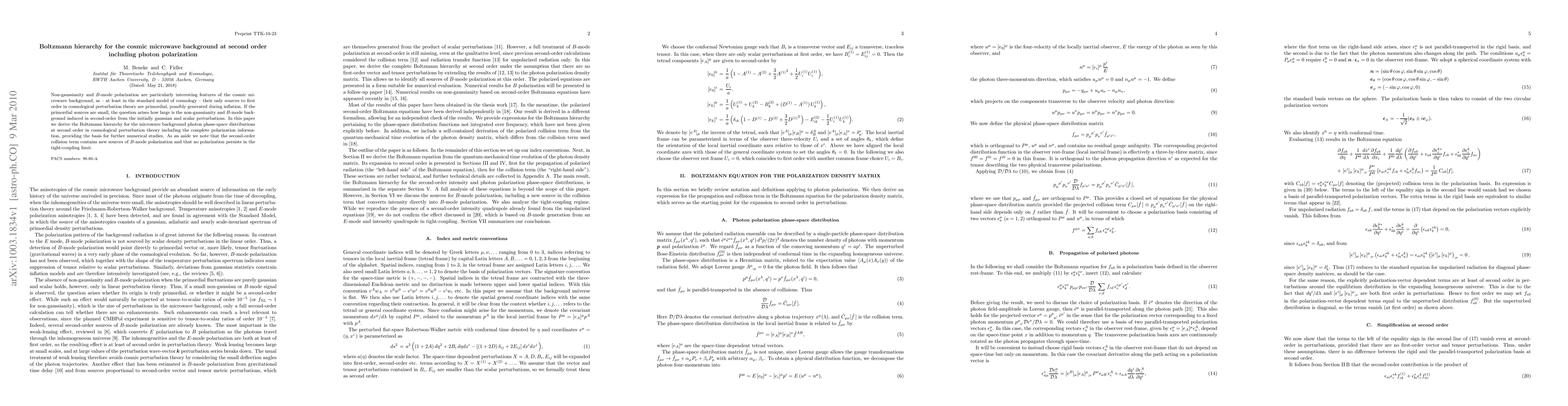 Non-gaussianity and B-mode polarization are particularly interesting features of the cosmic microwave background, as -- at least in the standard model of cosmology -- their only sources to first order in cosmological perturbation theory are primordial, possibly generated during inflation. If the primordial sources are small, the question arises how large is the non-gaussianity and B-mode background induced in second-order from the initially gaussian and scalar perturbations. In this paper we derive the Boltzmann hierarchy for the microwave background photon phase-space distributions at second order in cosmological perturbation theory including the complete polarization information, providing the basis for further numerical studies. As an aside we note that the second-order collision term contains new sources of B-mode polarization and that no polarization persists in the tight-coupling limit.
