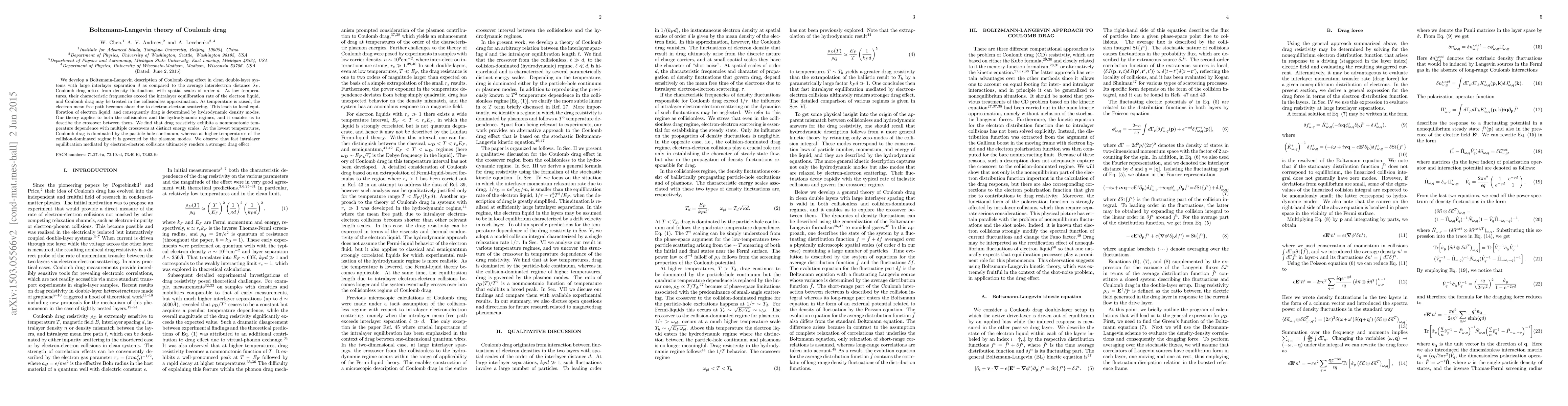 The paper develops a Boltzmann-Langevin theory to describe Coulomb drag in double-layer systems with large interlayer separation, detailing its behavior in both collisionless and hydrodynamic regimes. It reveals a nonmonotonic temperature dependence of drag resistivity with multiple crossovers, emphasizing the dominance of different modes at various temperatures.