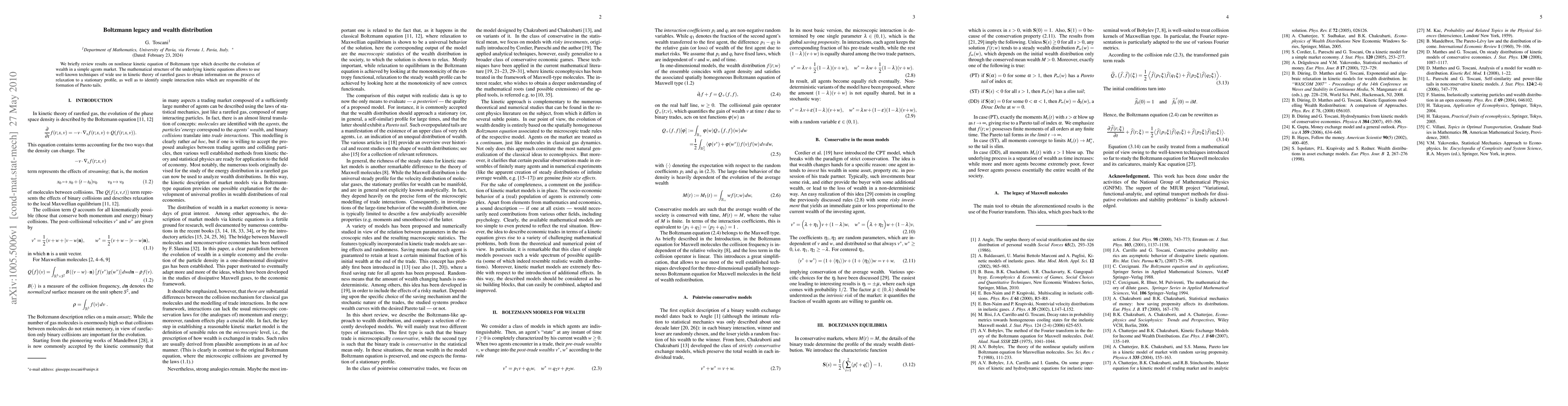 We briefly review results on nonlinear kinetic equation of Boltzmann type which describe the evolution of wealth in a simple agents market. The mathematical structure of the underlying kinetic equations allows to use well-known techniques of wide use in kinetic theory of rarefied gases to obtain information on the process of relaxation to a stationary profile, as well as to identify simple interaction rules which are responsible of the formation of Pareto tails.