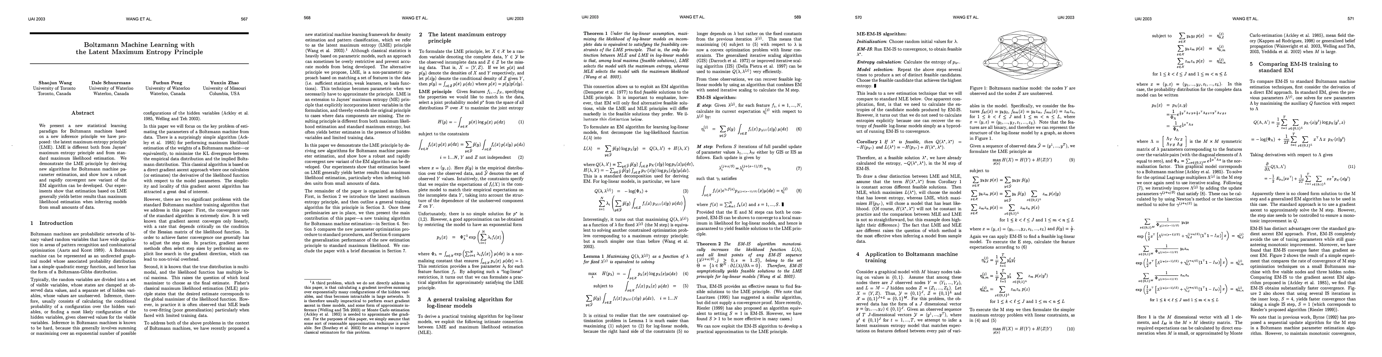 This paper introduces a novel learning paradigm for Boltzmann machines based on the latent maximum entropy principle (LME), which outperforms standard maximum likelihood estimation, especially with limited data. The authors develop new algorithms for parameter estimation and demonstrate improved performance through experiments.