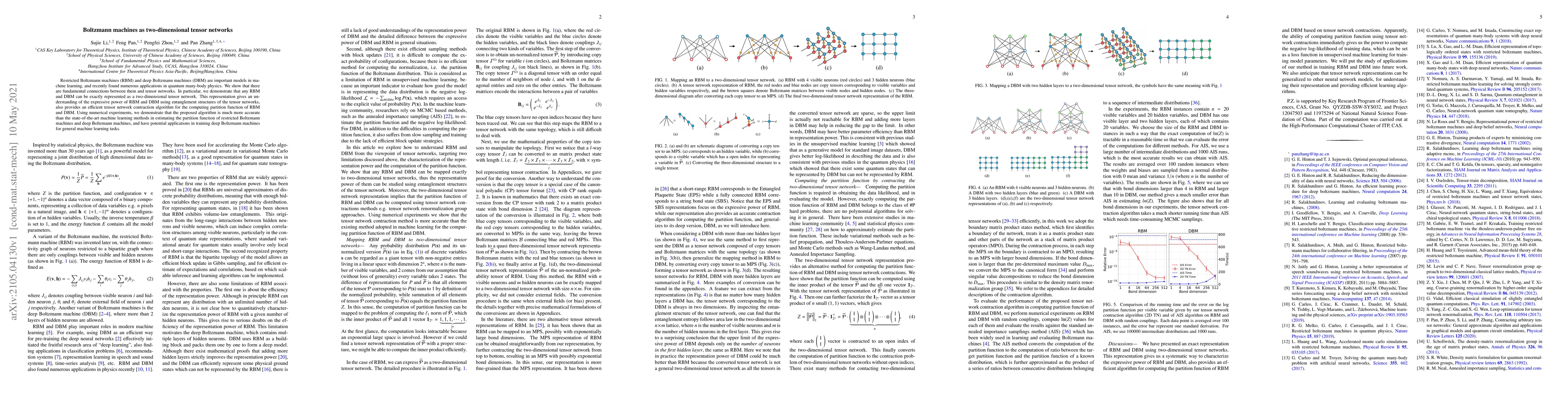 This paper establishes a connection between Boltzmann machines and tensor networks, showing that RBM and DBM can be represented as two-dimensional tensor networks. The proposed tensor network contraction algorithm for computing the partition function is demonstrated to be more accurate than existing machine learning methods.