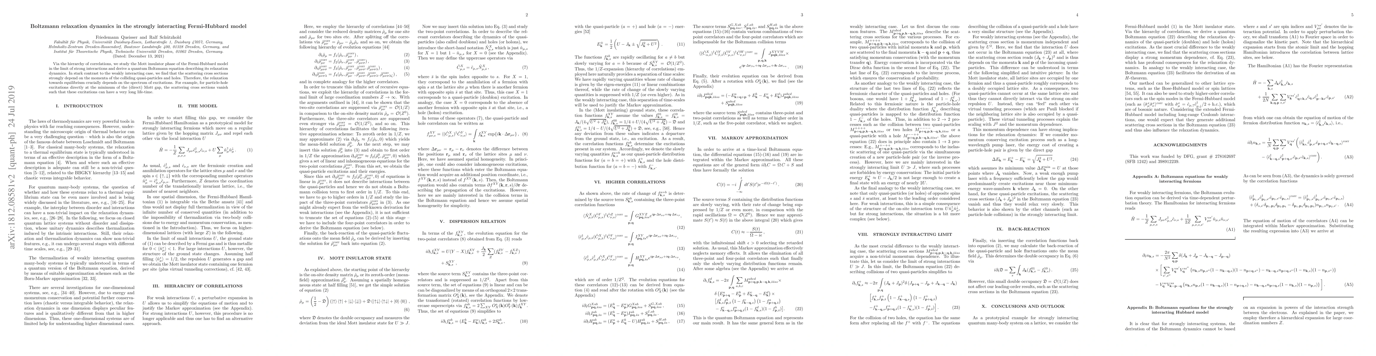 Researchers studied the Fermi-Hubbard model in strong interactions and found that relaxation dynamics depend on excitation spectra, leading to long-lived particle-hole excitations near the Mott gap.