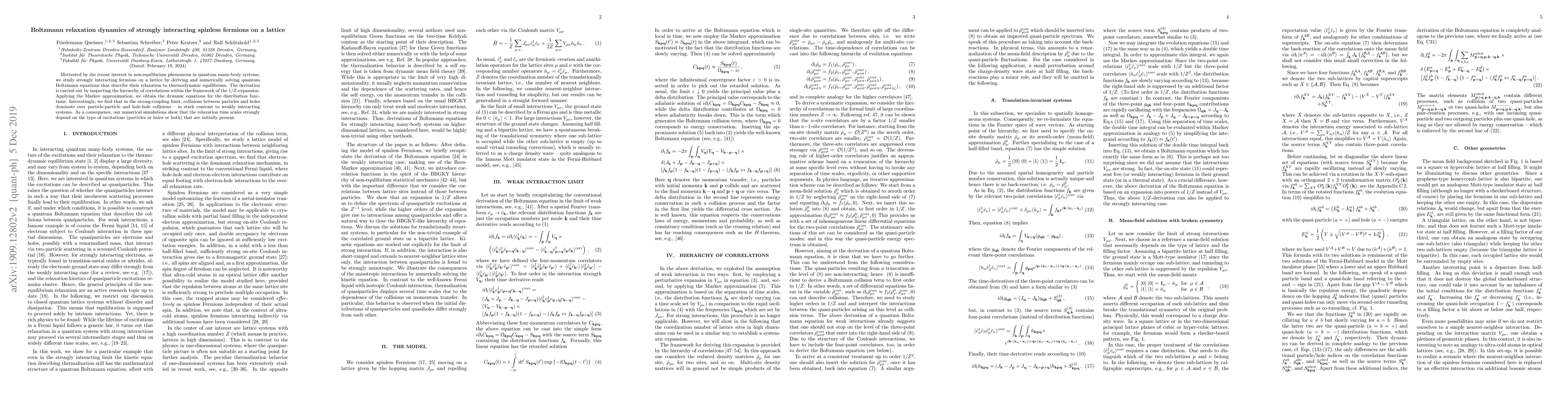 This paper investigates the relaxation dynamics of strongly interacting spinless fermions on a lattice using quantum Boltzmann equations derived via the 1/Z-expansion. The study reveals that in the strong-coupling limit, collisions between particles and holes dominate over other types, leading to varying relaxation time scales depending on the initial excitations present.