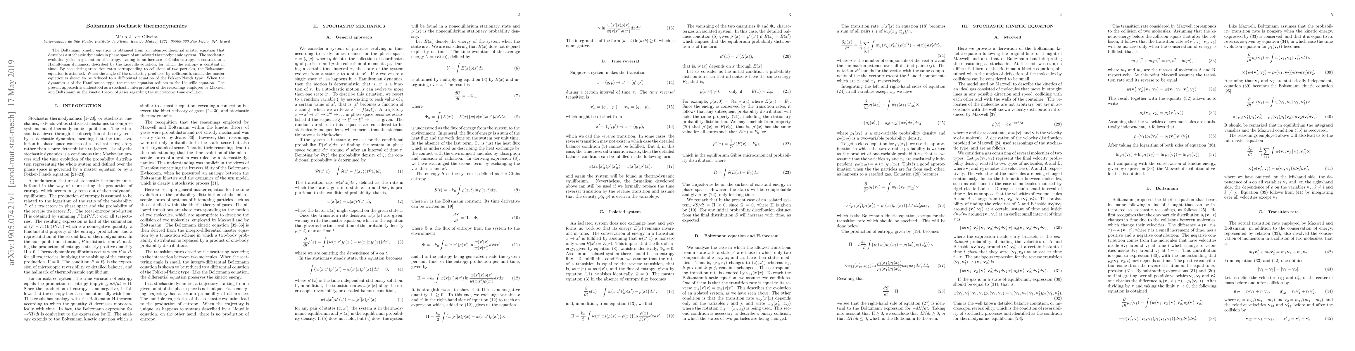 A stochastic thermodynamics framework is presented, deriving the Boltzmann kinetic equation from a master equation that describes microscopic dynamics in phase space of an isolated system. This approach offers a stochastic interpretation of Maxwell and Boltzmann's kinetic theory of gases.