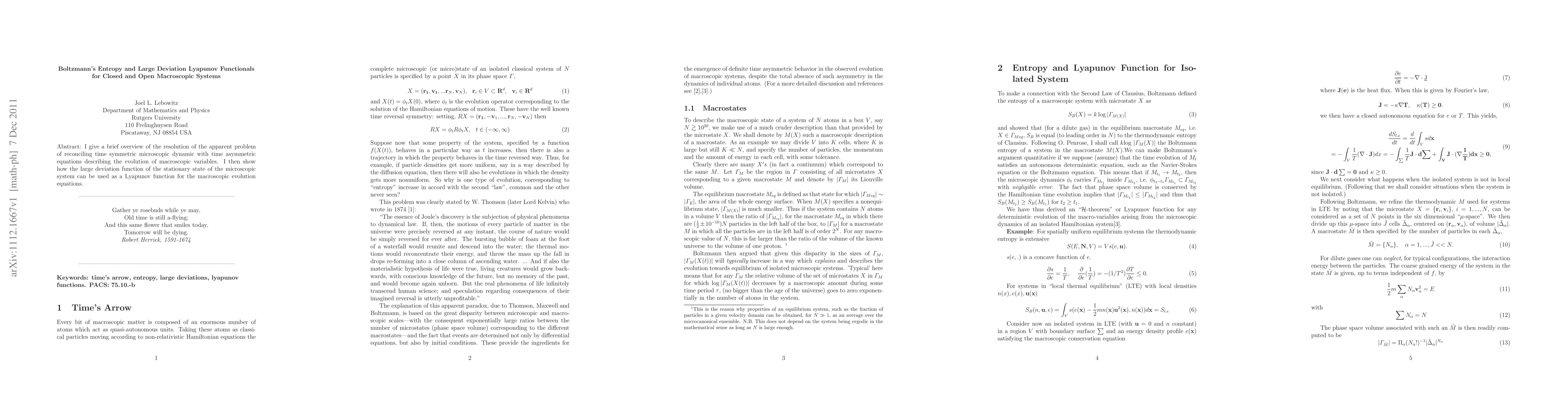 This paper resolves the issue of reconciling time-symmetric microscopic dynamics with time-asymmetric macroscopic evolution, demonstrating that the large deviation function of the microscopic system's stationary state can serve as a Lyapunov function for the macroscopic evolution equations.