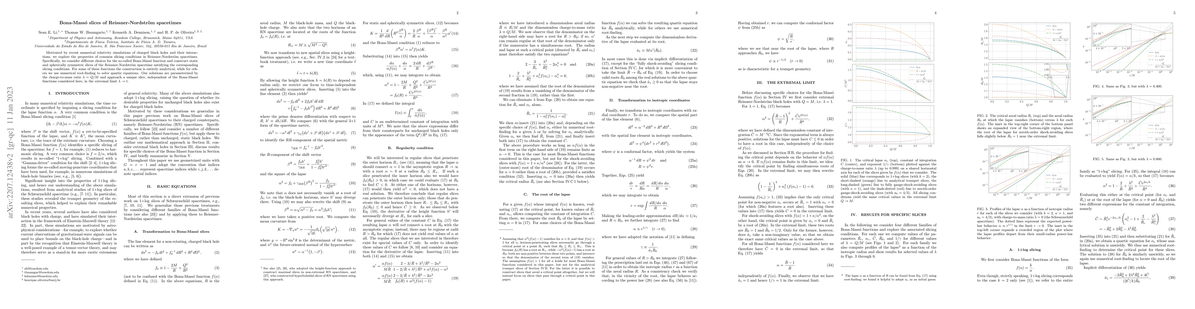 This paper investigates various slicing conditions for Reissner-Nordström spacetimes, focusing on the Bona-Massó function. It constructs static, spherically symmetric slices analytically or numerically, parameterized by the charge-to-mass ratio, converging to a unique slice in the extremal limit.