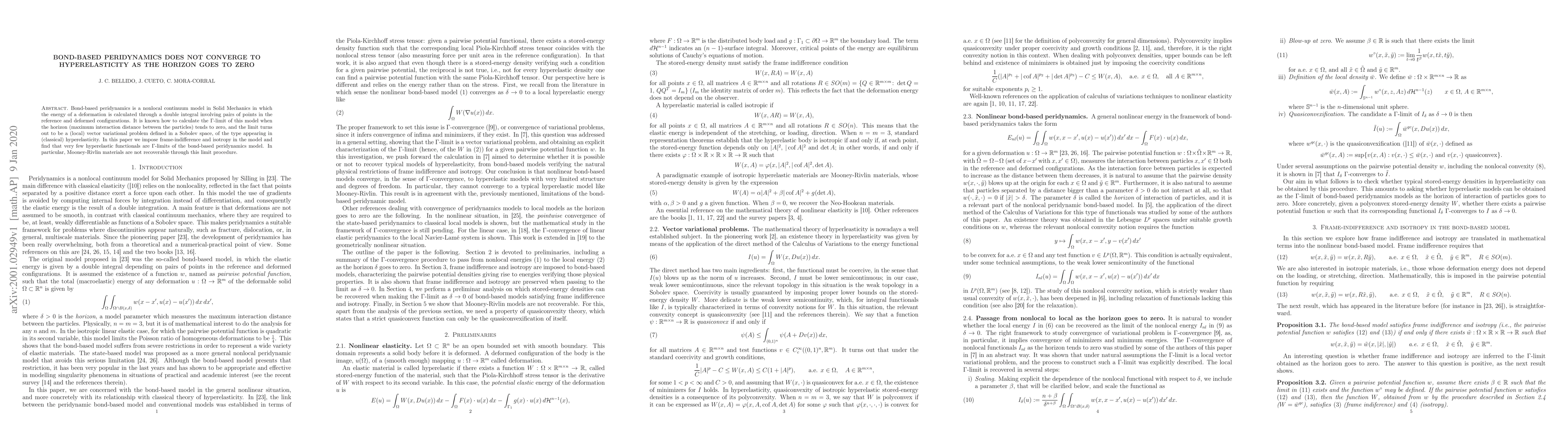 This paper demonstrates that the bond-based peridynamics model does not converge to classical hyperelasticity as the interaction horizon approaches zero, despite the expected limit being a local vector variational problem. Specifically, it shows that only a limited set of hyperelastic functionals can be derived from this peridynamics model, excluding materials like Mooney-Rivlin.