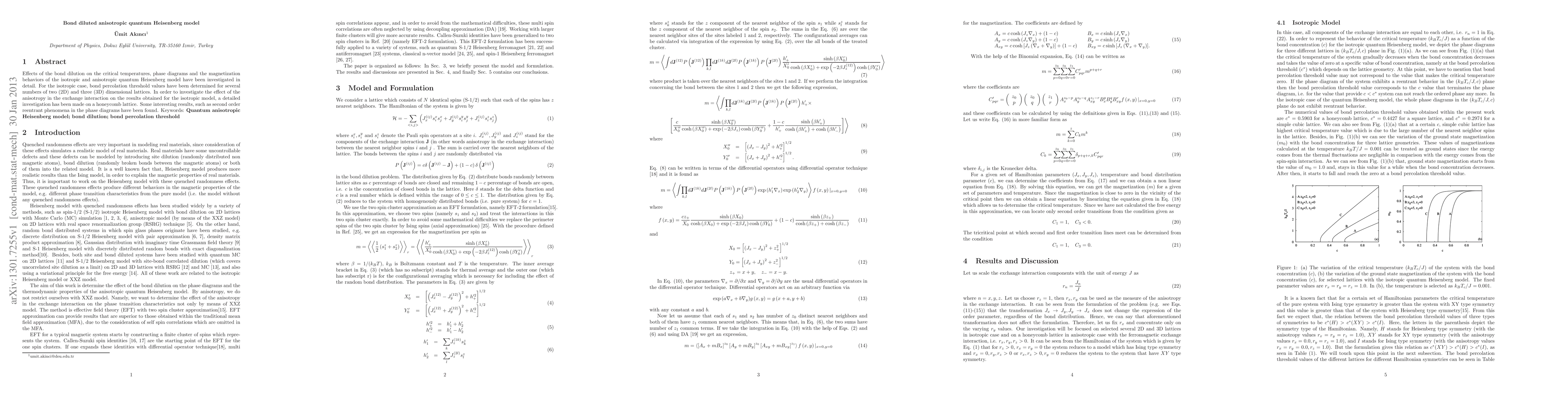 This paper investigates the effects of bond dilution on critical temperatures, phase diagrams, and magnetization behaviors in both isotropic and anisotropic quantum Heisenberg models. It determines percolation thresholds for various 2D and 3D lattices and finds second-order reentrant phenomena in the anisotropic model on a honeycomb lattice.