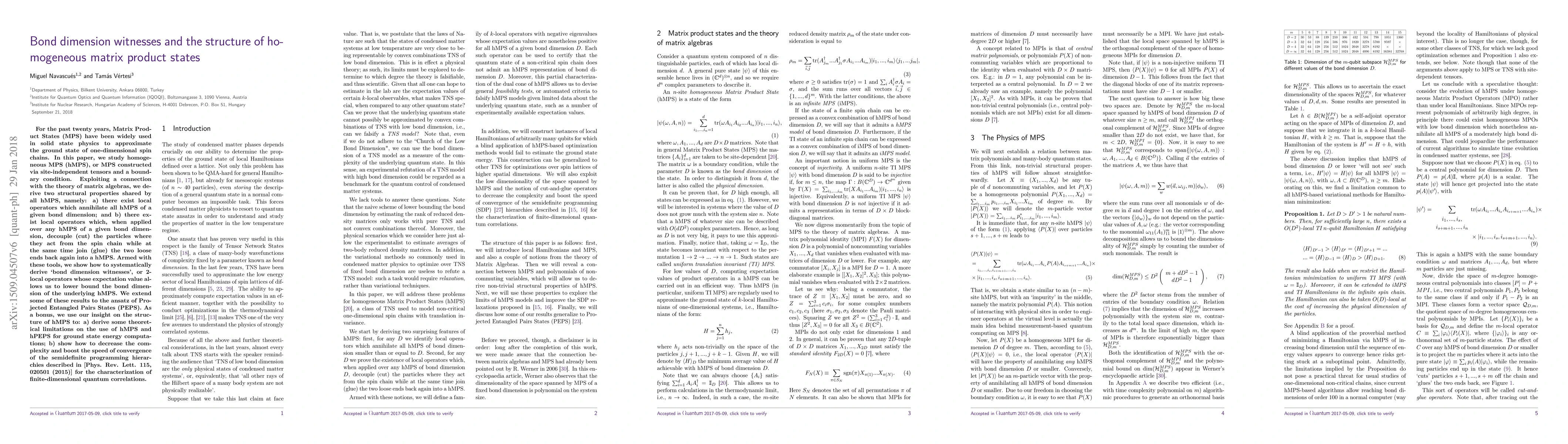 Researchers discovered two key properties of homogeneous Matrix Product States (hMPS), including local operators that can annihilate or decouple hMPS elements, enabling the systematic derivation of 'bond dimension witnesses' to lower bound the underlying bond dimension.