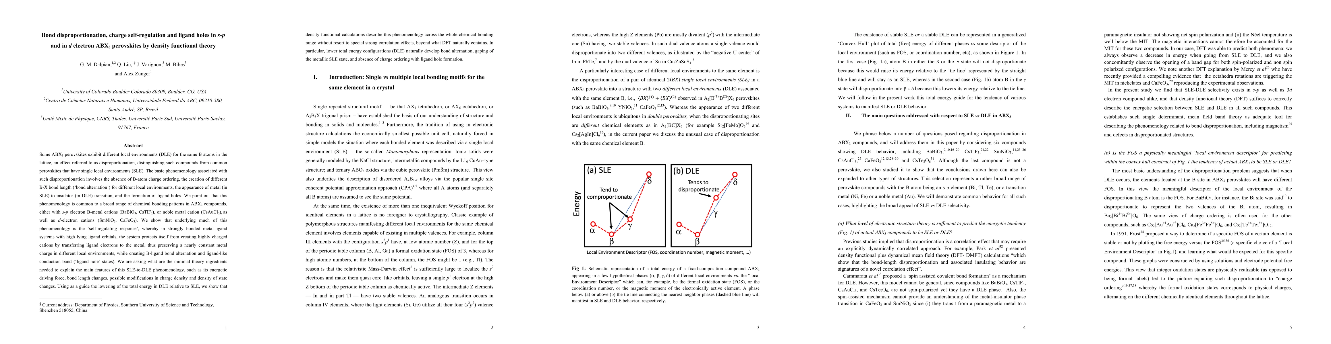 Some ABX3 perovskites exhibit different local environments (DLE) for the same B atoms in the lattice, an effect referred to as disproportionation, distinguishing such compounds from perovskites that have single local environments (SLE). The basic phenomenology of disproportionation involves the absence of B-atom charge ordering, the creation of different B-X bond length for different local environments, the appearance of metal (in SLE) to insulator (in DLE) transition, and the formation of ligand holes. We point out that this phenomenology is common to a broad range of chemical bonding patterns in ABX3 compounds, either with s-p electron B-metal cations (BaBiO3, CsTlF3), or noble metal cation (CsAuCl3), as well as d-electron cations (SmNiO3, CaFeO3). We show that underlying much of this phenomenology is the self-regulating response, whereby in strongly bonded metal-ligand systems with high lying ligand orbitals, the system protects itself from creating highly charged cations by transferring ligand electrons to the metal, thus preserving a nearly constant metal charge in DLE, while creating B-ligand bond alternation and ligand-like conduction band (ligand hole). We are asking what are the minimal theory ingredients needed to explain the main features of this SLE-to-DLE phenomenology, such as its energetic driving force, bond length changes, possible modifications in charge density and density of state changes. Using as a guide the lowering of the total energy in DLE relative to SLE, we show that density functional calculations describe this phenomenology across the whole chemical bonding range without resort to special strong correlation effects, beyond what DFT naturally contains. In particular, lower total energy configurations (DLE) naturally develop bond alternation, gaping of the metallic SLE state, and absence of charge ordering with ligand hole formation.