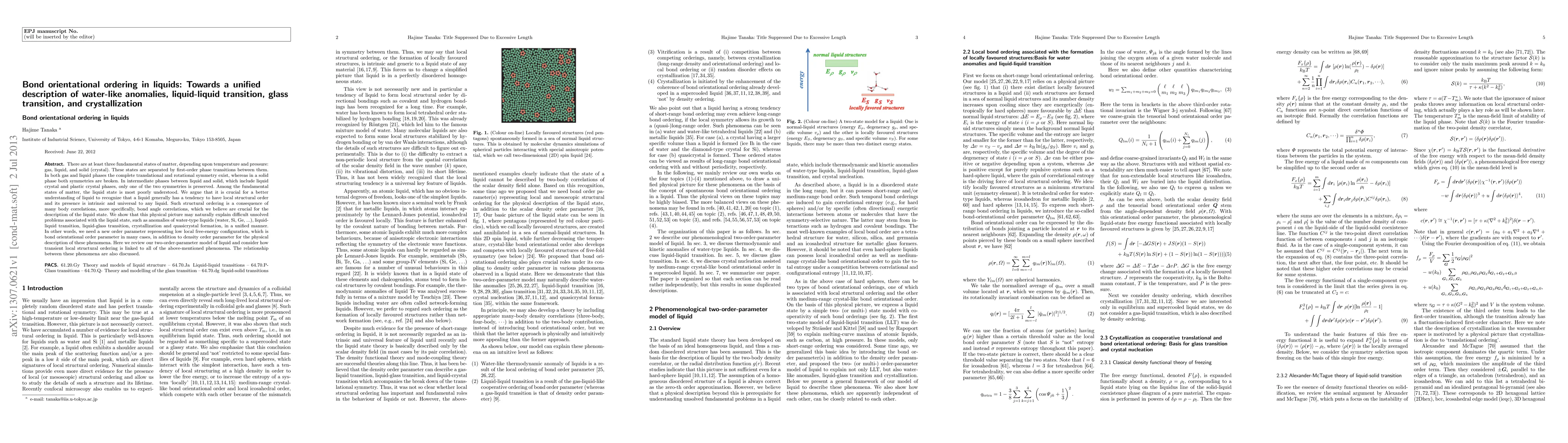 This paper proposes a unified description of various anomalies and transitions in liquids, including water-like anomalies, liquid-liquid transitions, and glass transitions, using a two-order-parameter model. It emphasizes the importance of bond orientational order alongside density order to understand the intrinsic local structural ordering in liquids.