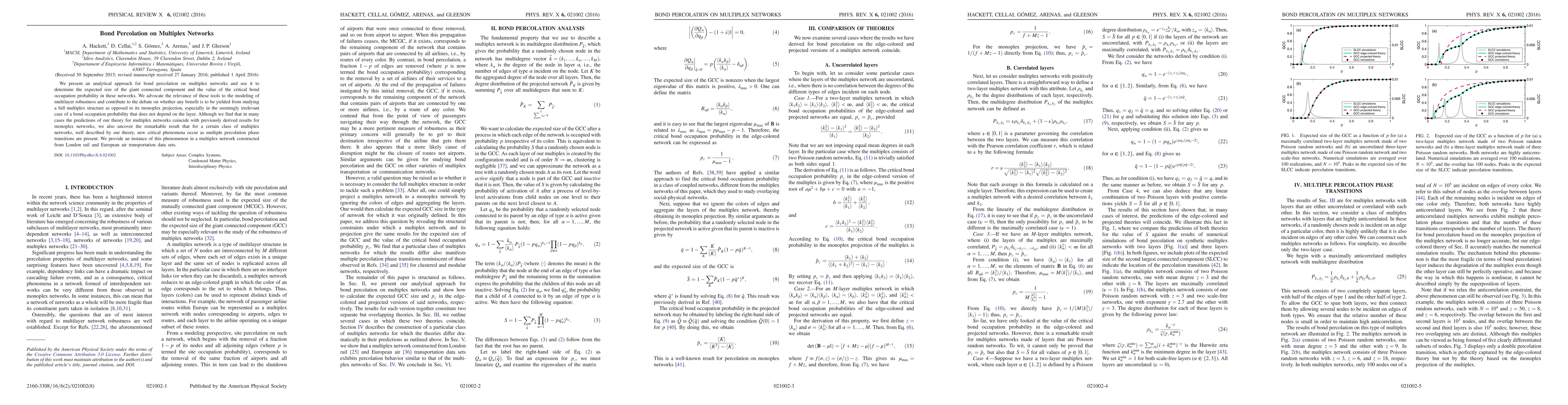This research develops an analytical framework for bond percolation on multiplex networks, revealing the expected size of the giant connected component and the critical bond occupation probability. It finds that while many multiplex networks align with monoplex results, certain networks exhibit new critical phenomena, suggesting unique benefits in studying full multiplex structures.