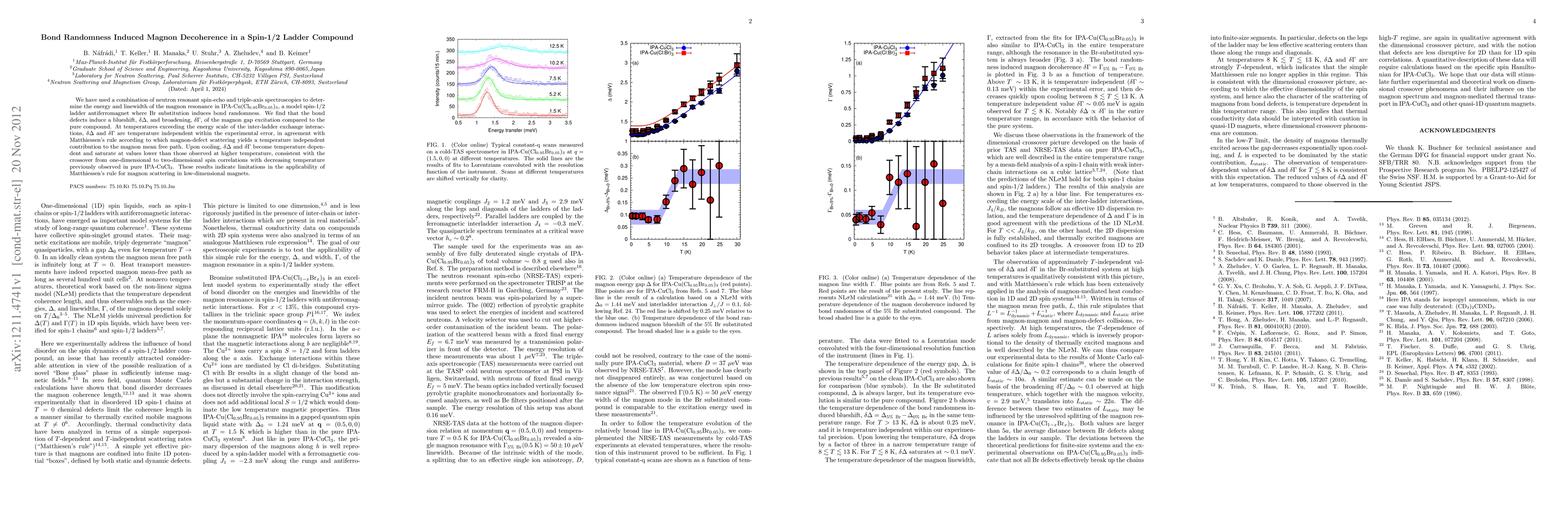 We have used a combination of neutron resonant spin-echo and triple-axis spectroscopies to determine the energy and linewidth of the magnon resonance in IPA-Cu(Cl$_{0.95}$Br$_{0.05}$)$_3$, a model spin-1/2 ladder antiferromagnet where Br substitution induces bond randomness. We find that the bond defects induce a blueshift, $\delta \Delta$, and broadening, $\delta \Gamma$, of the magnon gap excitation compared to the pure compound. At temperatures exceeding the energy scale of the inter-ladder exchange interactions, $\delta \Delta$ and $\delta \Gamma$ are temperature independent within the experimental error, in agreement with Matthiessen's rule according to which magnon-defect scattering yields a temperature independent contribution to the magnon mean free path. Upon cooling, $\delta \Delta$ and $\delta \Gamma$ become temperature dependent and saturate at values lower than those observed at higher temperature, consistent with the crossover from one-dimensional to two-dimensional spin correlations with decreasing temperature previously observed in pure IPA-CuCl$_3$. These results indicate limitations in the applicability of Matthiessen's rule for magnon scattering in low-dimensional magnets.