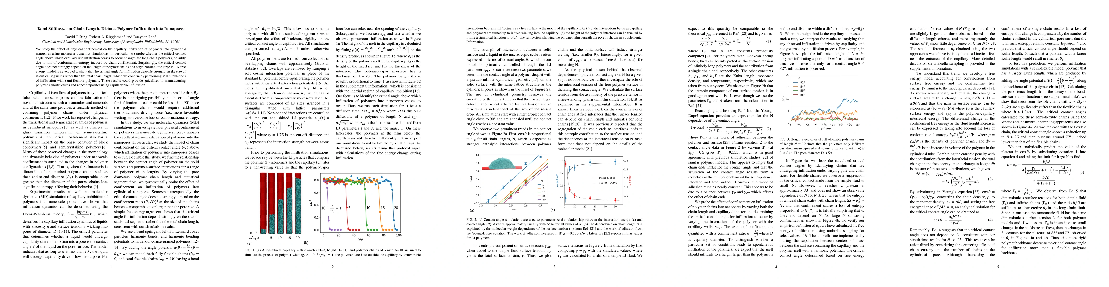 The study reveals that polymer infiltration into nanopores is governed by bond stiffness rather than chain length, with the critical contact angle for infiltration remaining constant despite varying polymer chain length. A developed free energy model highlights that statistical segment size, not total chain length, dictates infiltration behavior.
