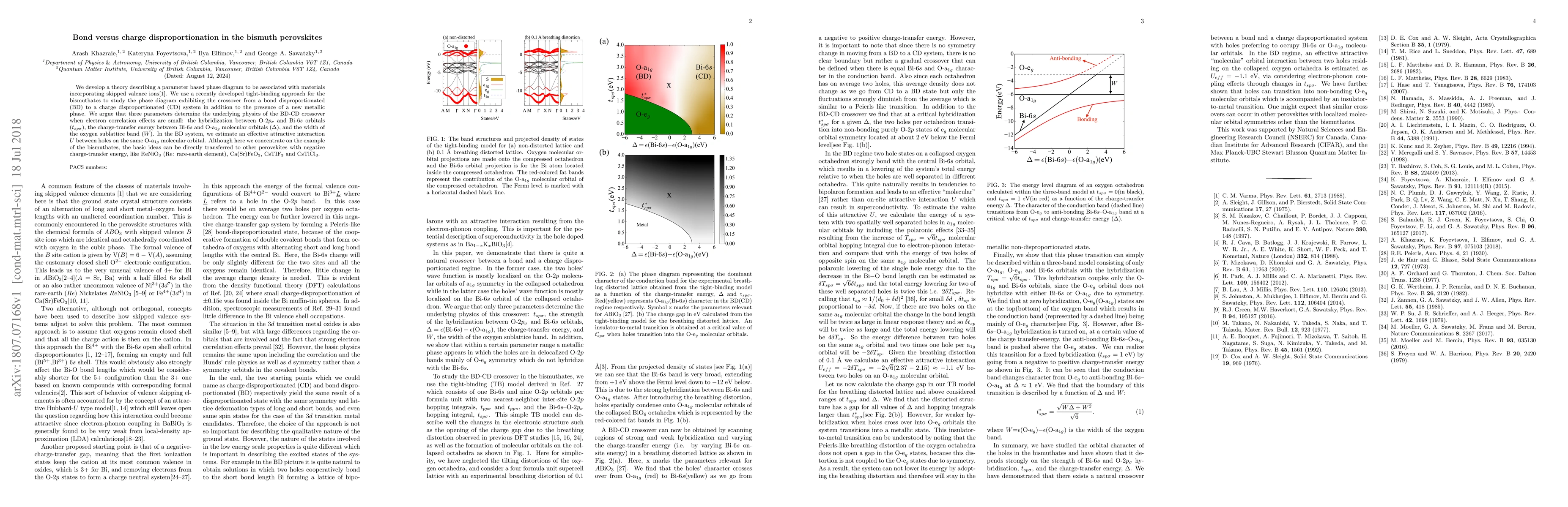 This paper develops a theoretical framework to describe the phase diagram of bismuth perovskites, showing a transition from bond disproportionation to charge disproportionation, alongside a new metallic phase. The key parameters influencing this crossover are identified as hybridization between oxygen and bismuth orbitals, charge-transfer energy, and the oxygen sublattice band width.