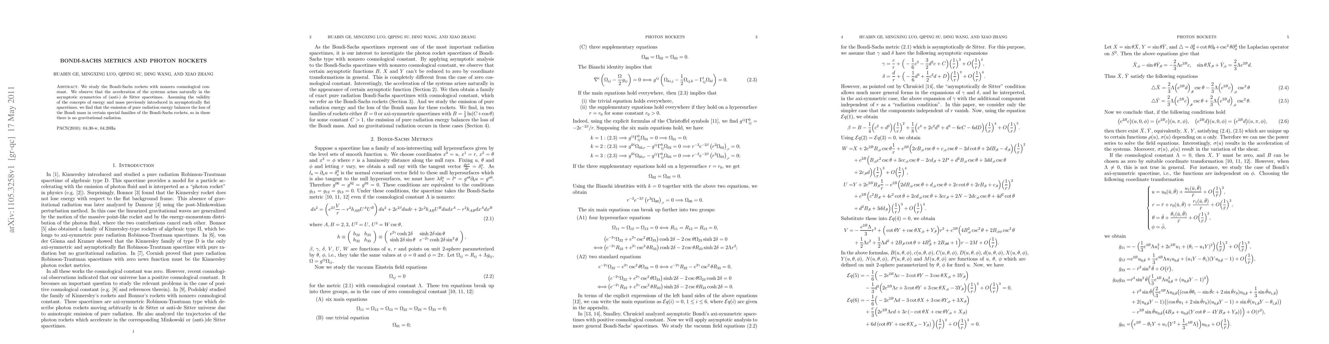 This paper investigates Bondi-Sachs rockets in (anti-)de Sitter spacetimes with a nonzero cosmological constant, revealing that system acceleration naturally emerges from asymptotic symmetries. It concludes that pure radiation energy emission compensates for Bondi mass loss in specific rocket families, resulting in no gravitational radiation.