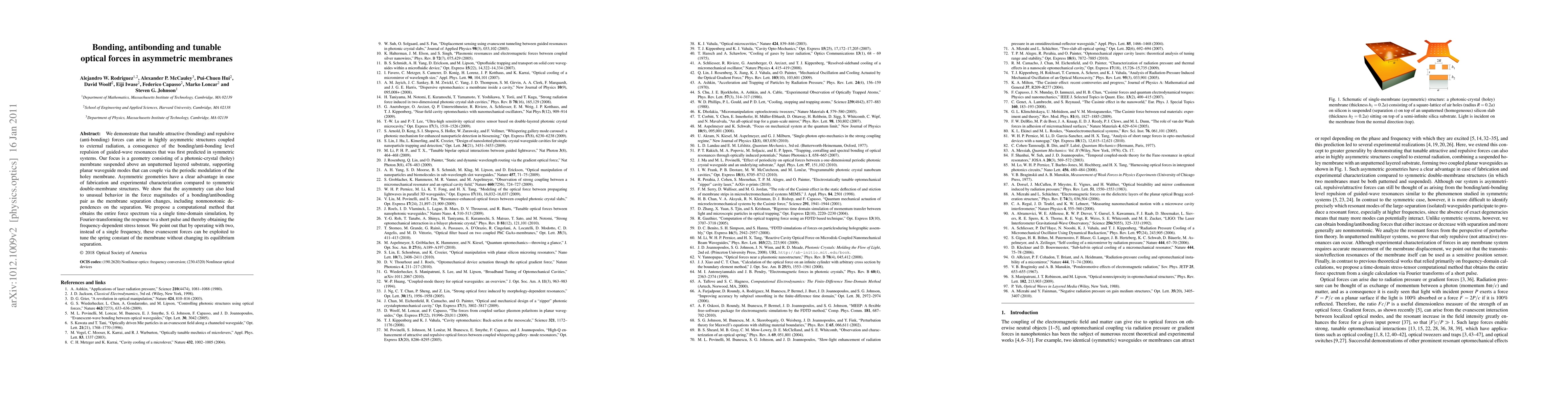 We demonstrate that tunable attractive (bonding) and repulsive (anti-bonding) forces can arise in highly asymmetric structures coupled to external radiation, a consequence of the bonding/anti-bonding level repulsion of guided-wave resonances that was first predicted in symmetric systems. Our focus is a geometry consisting of a photonic-crystal (holey) membrane suspended above an unpatterned layered substrate, supporting planar waveguide modes that can couple via the periodic modulation of the holey membrane. Asymmetric geometries have a clear advantage in ease of fabrication and experimental characterization compared to symmetric double-membrane structures. We show that the asymmetry can also lead to unusual behavior in the force magnitudes of a bonding/antibonding pair as the membrane separation changes, including nonmonotonic dependences on the separation. We propose a computational method that obtains the entire force spectrum via a single time-domain simulation, by Fourier-transforming the response to a short pulse and thereby obtaining the frequency-dependent stress tensor. We point out that by operating with two, instead of a single frequency, these evanescent forces can be exploited to tune the spring constant of the membrane without changing its equilibrium separation.
