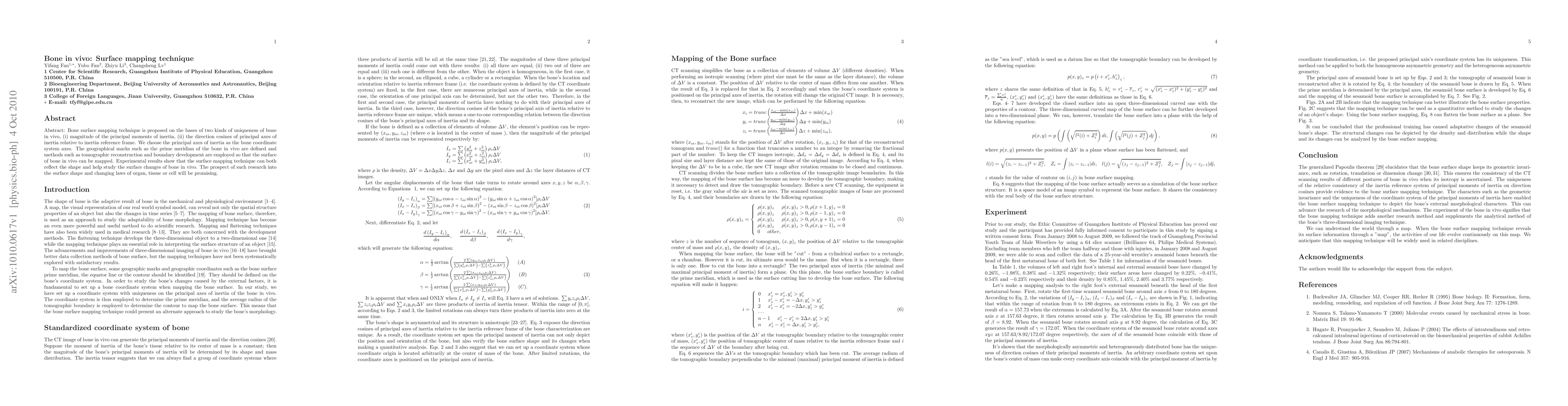 A surface mapping technique was proposed based on the uniqueness of bone in vivo, using principal moments of inertia and direction cosines.
