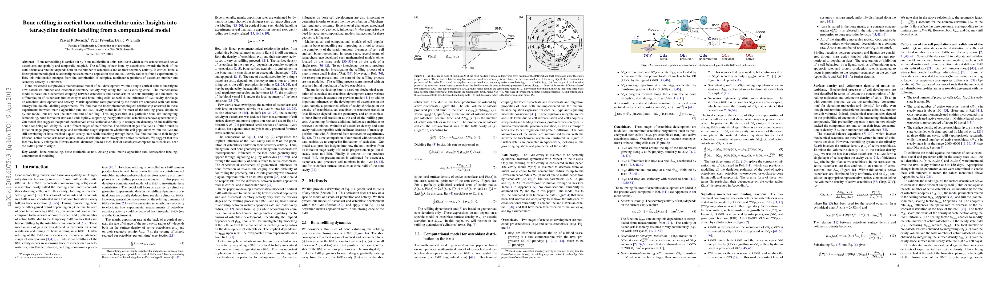 This paper uses a computational model to explore how osteoblast number and activity influence bone refilling in cortical bone multicellular units (BMUs), finding that the linear relationship between matrix apposition rate and BMU cavity radius holds mostly during refilling but not at its start and end. The model suggests variability in tetracycline data may reflect BMUs at different stages of their lifecycle.