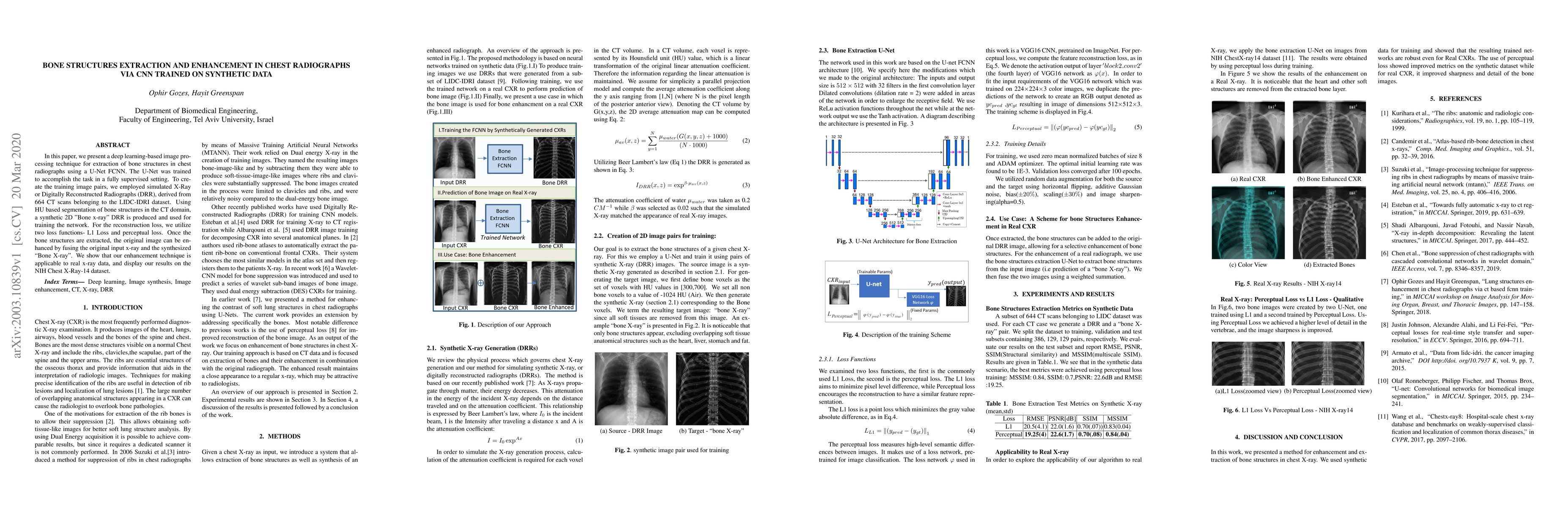 This research proposes a deep learning method using a U-Net FCNN for extracting bone structures from chest radiographs, trained on synthetic data derived from CT scans. The enhanced original images are demonstrated to work effectively on real x-ray data.
