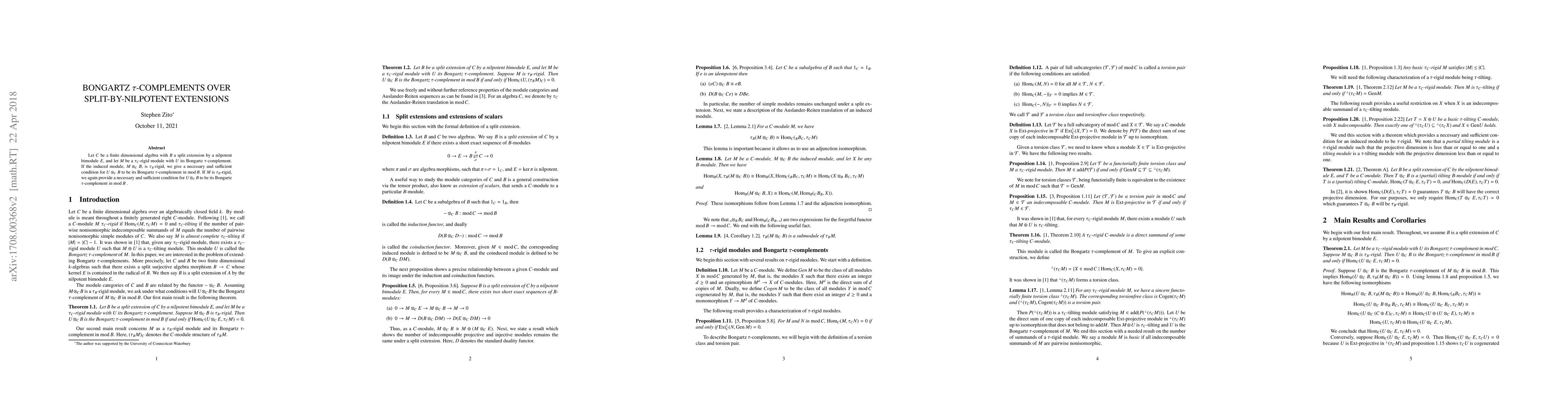 The paper provides conditions under which a certain module is its own Bongartz $ au$-complement in mod B, related to split-by-nilpotent extensions and ${ au}$-rigidity.