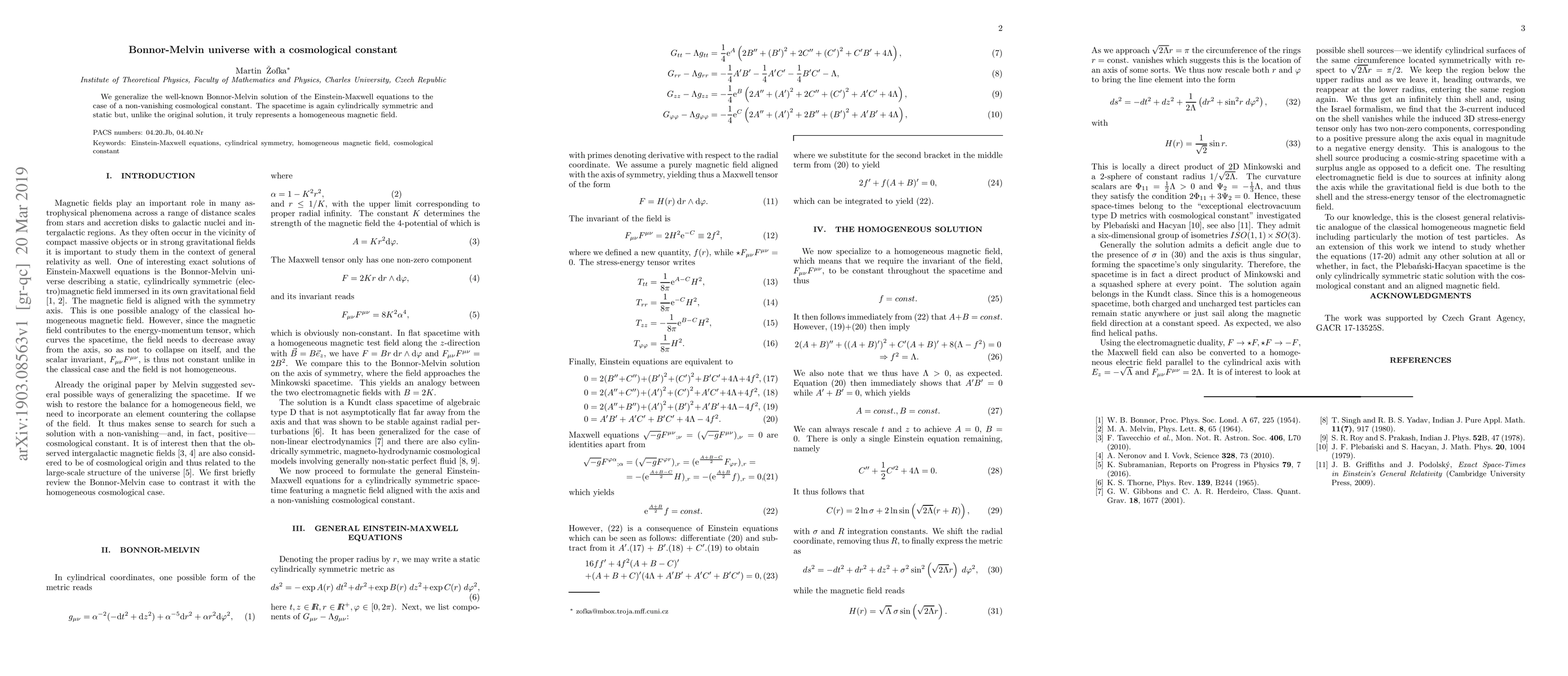 This paper generalizes the Bonnor-Melvin solution to include a non-vanishing cosmological constant, resulting in a homogeneous magnetic field that represents a static, cylindrically symmetric spacetime.