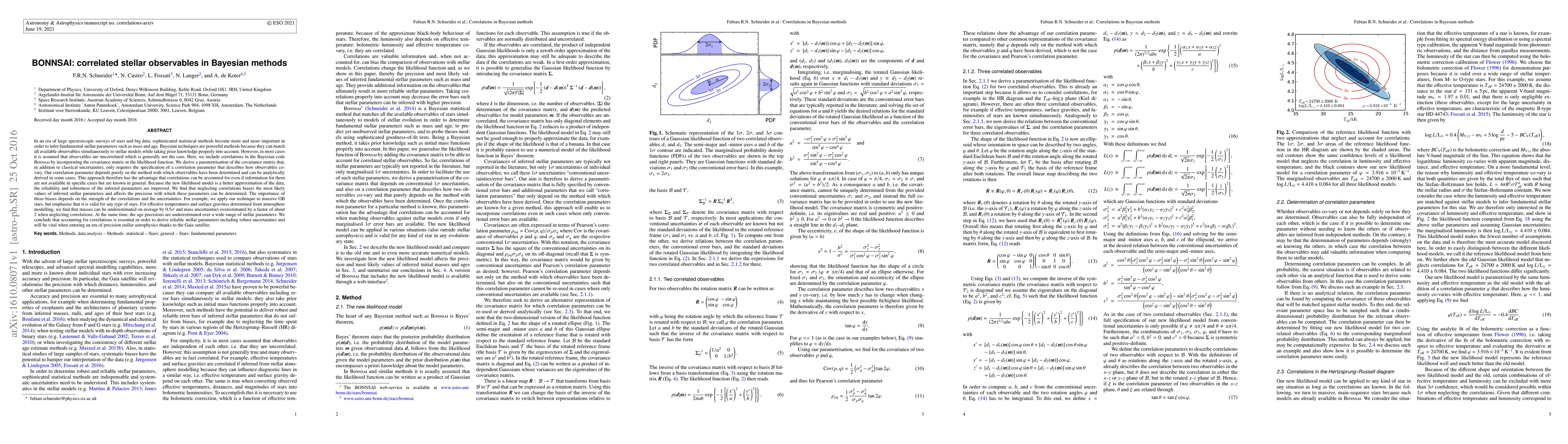 In an era of large spectroscopic surveys of stars and big data, sophisticated statistical methods become more and more important in order to infer fundamental stellar parameters such as mass and age. Bayesian techniques are powerful methods because they can match all available observables simultaneously to stellar models while taking prior knowledge properly into account. However, in most cases it is assumed that observables are uncorrelated which is generally not the case. Here, we include correlations in the Bayesian code BONNSAI by incorporating the covariance matrix in the likelihood function. We derive a parametrisation of the covariance matrix that, in addition to classical uncertainties, only requires the specification of a correlation parameter that describes how observables co-vary. Our correlation parameter depends purely on the method with which observables have been determined and can be analytically derived in some cases. This approach therefore has the advantage that correlations can be accounted for even if information for them are not available in specific cases but are known in general. Because the new likelihood model is a better approximation of the data, the reliability and robustness of the inferred parameters are improved. We find that neglecting correlations biases the most likely values of inferred stellar parameters and affects the precision with which these parameters can be determined. For example, we apply our technique to massive OB stars, but emphasise that it is valid for any type of stars. For effective temperatures and surface gravities determined from atmosphere modelling, we find that masses can be underestimated on average by $0.5\sigma$ and mass uncertainties overestimated by a factor of about 2 when neglecting correlations. At the same time, the age precisions are underestimated over a wide range of stellar parameters. [abridged]