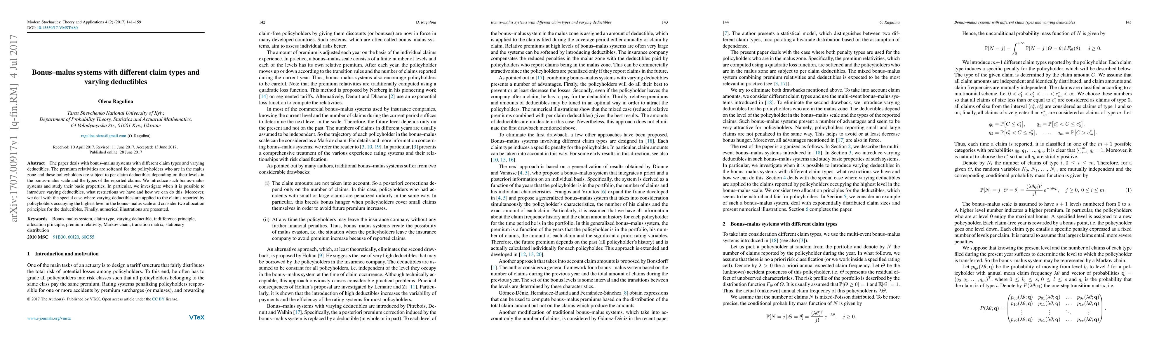 This paper introduces bonus-malus systems with varying deductibles based on claim types and policyholder risk levels, analyzing the conditions and restrictions for implementing such systems. It also explores allocation principles for deductibles and provides numerical examples.