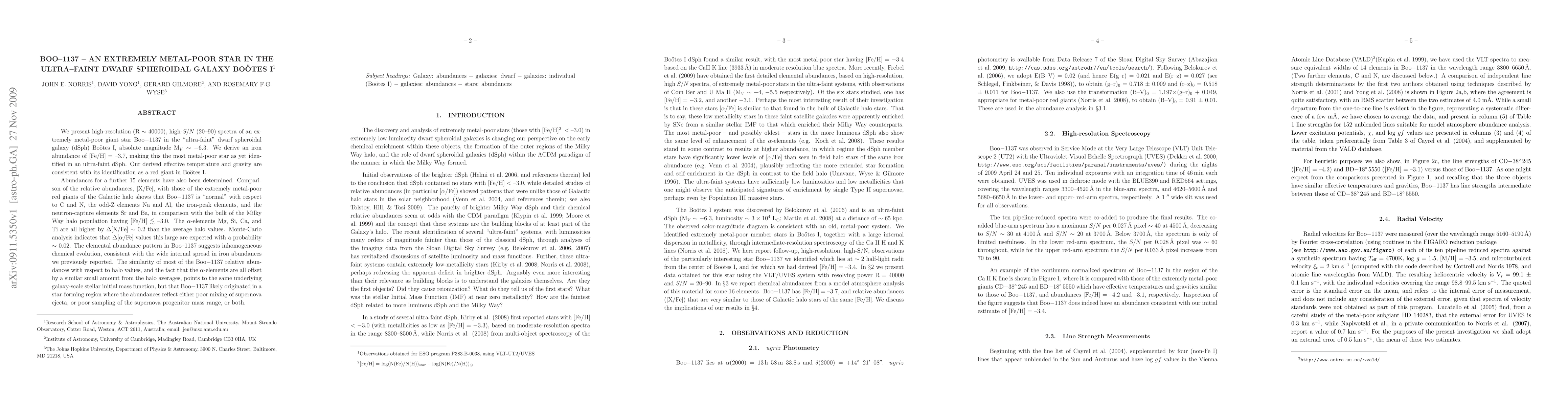 This paper identifies Boo-1137, an extremely metal-poor star in the ultra-faint dwarf galaxy Bootes I, as the most metal-poor star in an ultra-faint dSph with [Fe/H] = -3.7. The study finds Boo-1137's elemental abundances resemble those of Galactic halo stars, suggesting inhomogeneous chemical evolution and a similar galaxy-scale stellar initial mass function.