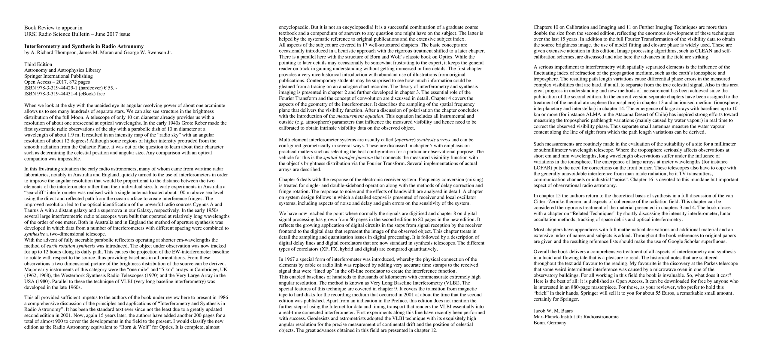 This review examines the third edition of "Interferometry and Synthesis in Radio Astronomy," highlighting advancements in radio astronomy techniques and the latest developments in interferometry and synthesis methods. It provides an updated perspective on the field's progress since the previous editions.