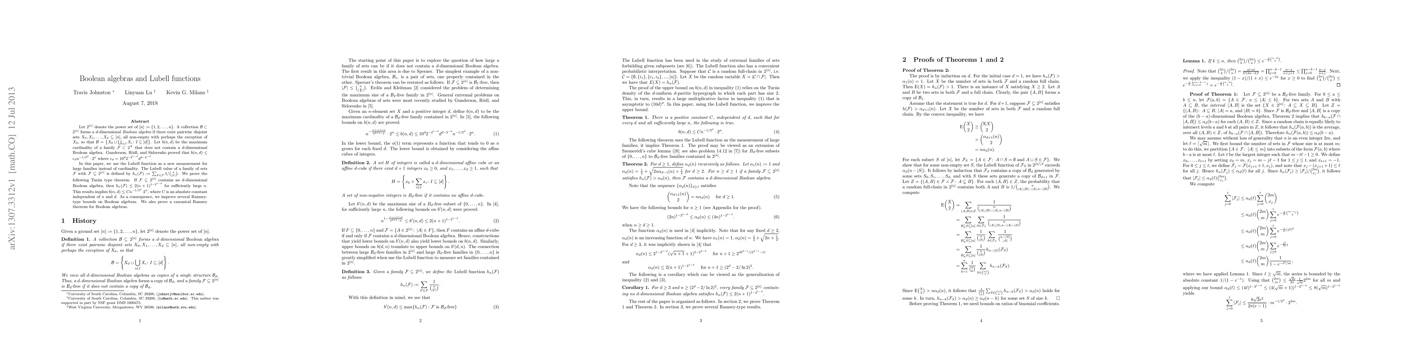 Let $2^{[n]}$ denote the power set of $[n]:=\{1,2,..., n\}$. A collection $\B\subset 2^{[n]}$ forms a $d$-dimensional {\em Boolean algebra} if there exist pairwise disjoint sets $X_0, X_1,..., X_d \subseteq [n]$, all non-empty with perhaps the exception of $X_0$, so that $\B={X_0\cup \bigcup_{i\in I} X_i\colon I\subseteq [d]}$. Let $b(n,d)$ be the maximum cardinality of a family $\F\subset 2^X$ that does not contain a $d$-dimensional Boolean algebra. Gunderson, R\"odl, and Sidorenko proved that $b(n,d) \leq c_d n^{-1/2^d} \cdot 2^n$ where $c_d= 10^d 2^{-2^{1-d}}d^{d-2^{-d}}$. In this paper, we use the Lubell function as a new measurement for large families instead of cardinality. The Lubell value of a family of sets $\F$ with $\F\subseteq \tsupn$ is defined by $h_n(\F):=\sum_{F\in \F}1/{{n\choose |F|}}$. We prove the following Tur\'an type theorem. If $\F\subseteq 2^{[n]}$ contains no $d$-dimensional Boolean algebra, then $h_n(\F)\leq 2(n+1)^{1-2^{1-d}}$ for sufficiently large $n$. This results implies $b(n,d) \leq C n^{-1/2^d} \cdot 2^n$, where $C$ is an absolute constant independent of $n$ and $d$. As a consequence, we improve several Ramsey-type bounds on Boolean algebras. We also prove a canonical Ramsey theorem for Boolean algebras.
