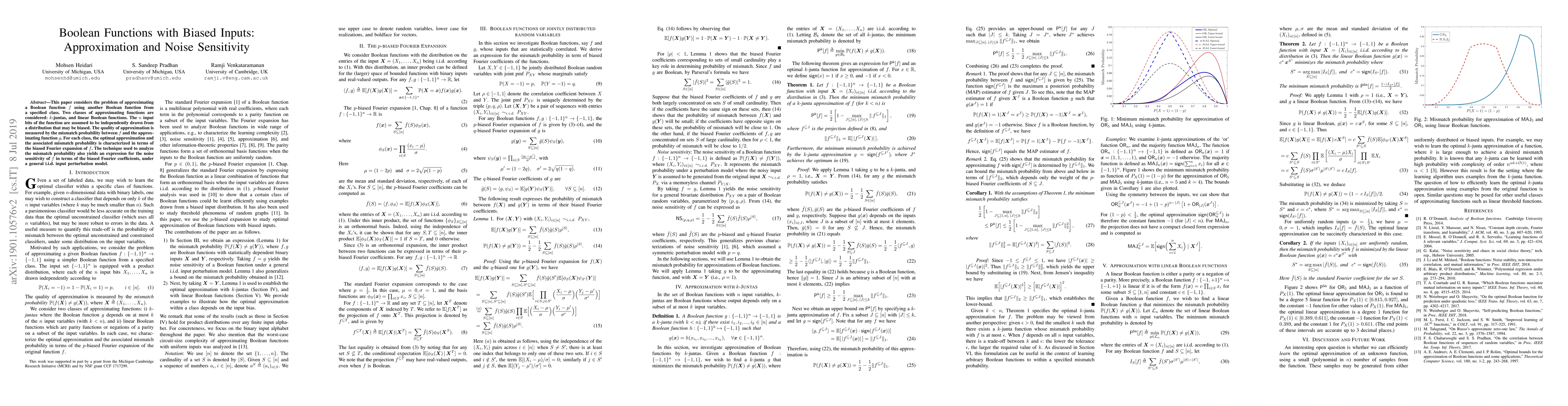 This paper studies the approximation of Boolean functions $f$ using $k$-juntas and linear Boolean functions, under biased input distributions. It characterizes the optimal approximation quality and noise sensitivity in terms of the biased Fourier expansion of $f$.