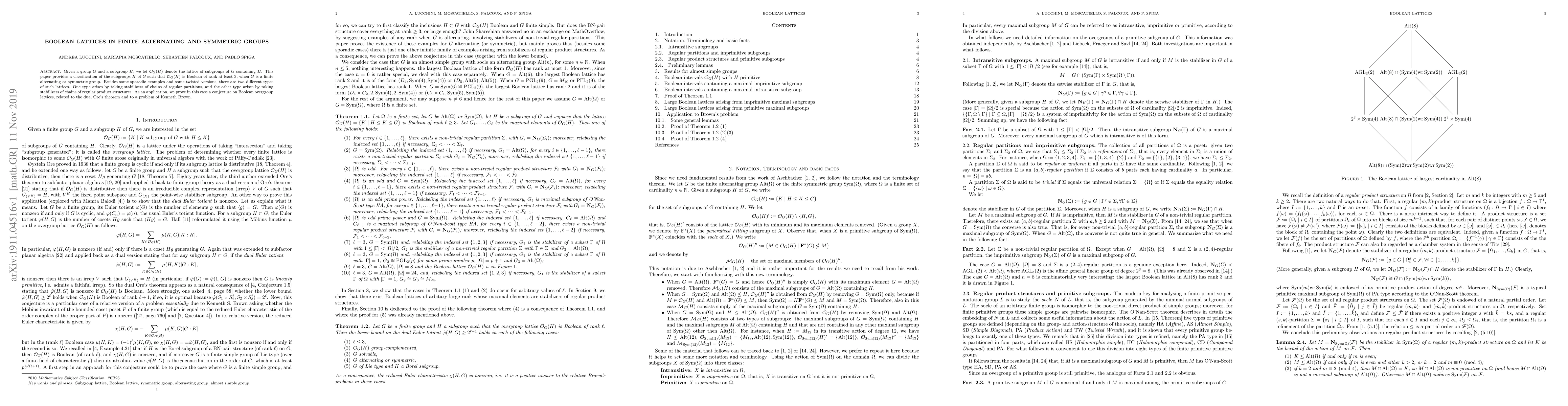This paper classifies subgroups of finite alternating and symmetric groups that yield Boolean lattices of rank at least 3, with two types emerging from stabilizers of regular partitions and product structures.