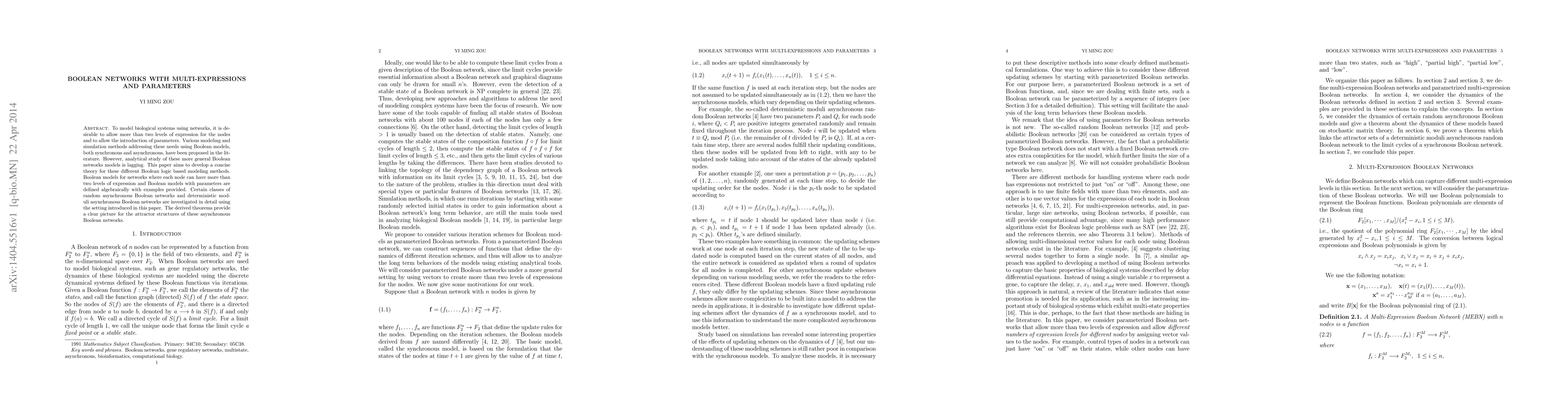 This paper develops a theoretical framework for Boolean networks that allow nodes to express more than two levels and incorporate parameters. It provides algebraic definitions and investigates the attractor structures of specific classes of asynchronous Boolean networks, offering insights into their dynamics.