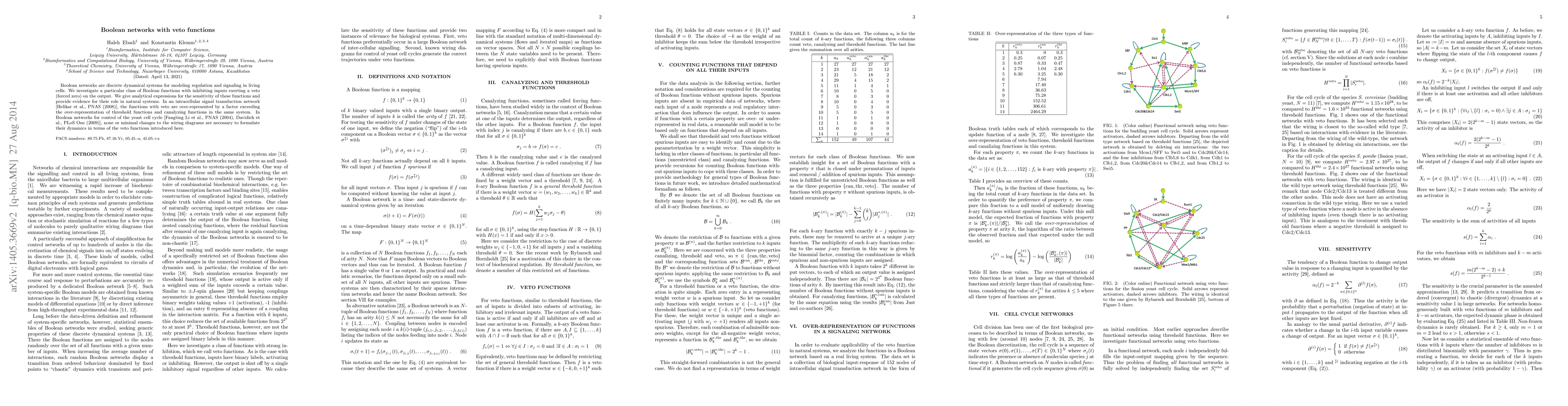 The research investigates Boolean networks with veto functions, providing analytical expressions for their sensitivity and demonstrating their role in natural systems through evidence from intracellular signal transduction networks and yeast cell cycle control networks.