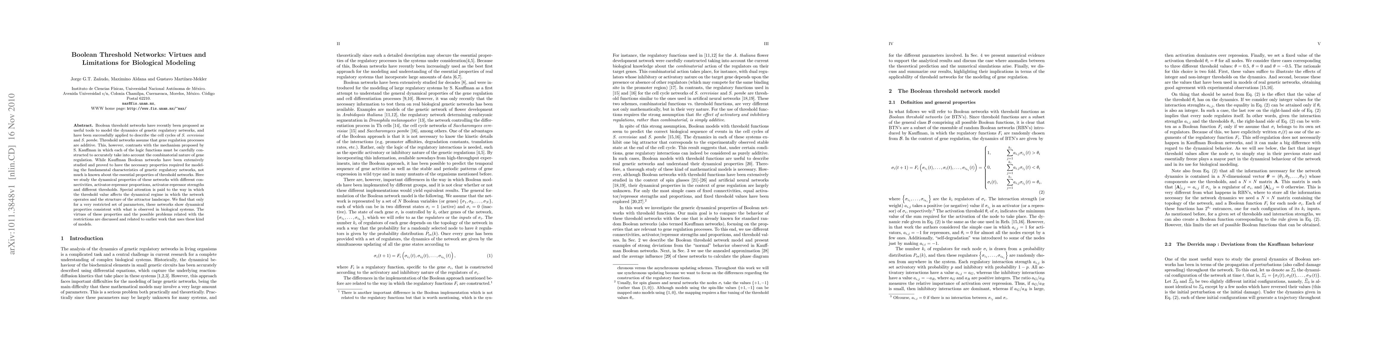 Boolean threshold networks are effective for modeling genetic regulatory dynamics but show limited applicability due to restrictive parameter settings that align with biological observations. The study highlights the networks' limitations in capturing the combinatorial nature of gene regulation, contrasting with Kauffman Boolean networks.