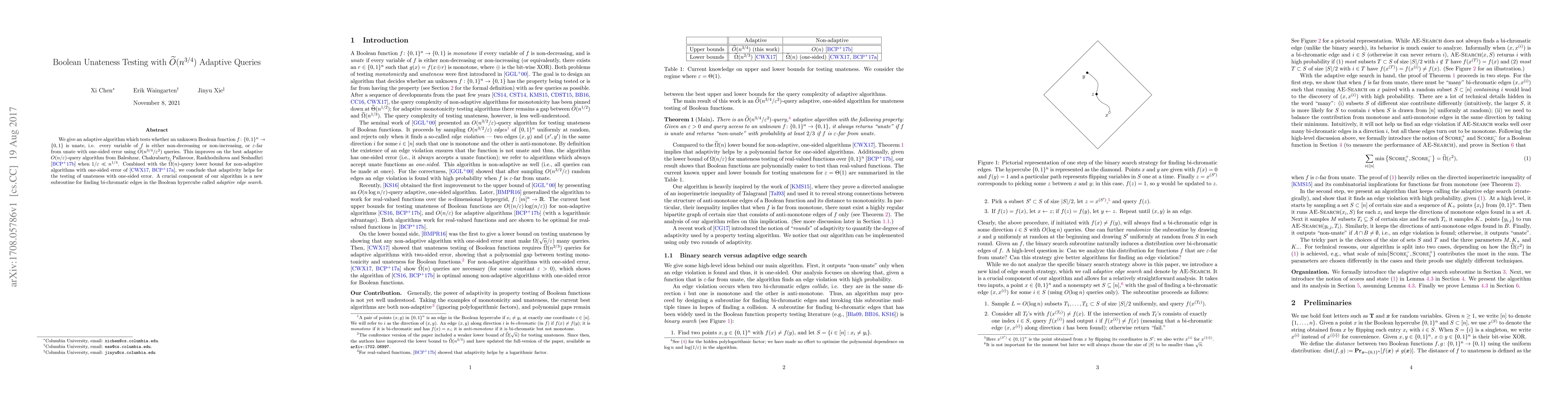 This paper presents an adaptive algorithm that tests Boolean unateness using $\widetilde{O}(n^{3/4}/\epsilon^2)$ queries, significantly improving upon previous adaptive methods. The algorithm leverages a new adaptive edge search subroutine to achieve this efficiency, demonstrating that adaptivity enhances unateness testing.