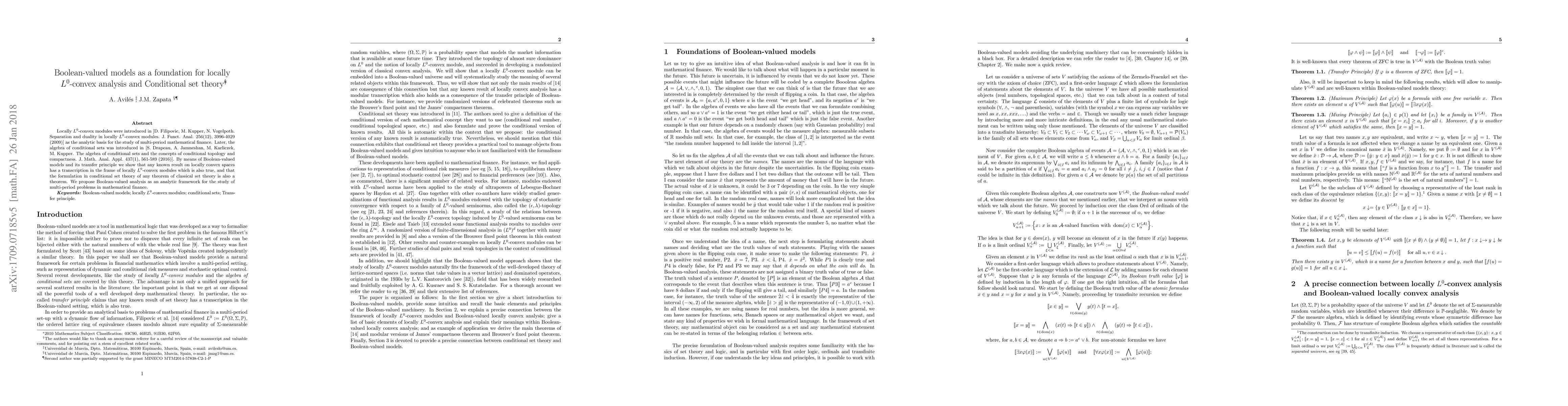 This paper explores the application of Boolean-valued models to locally $L^0$-convex analysis and conditional set theory, demonstrating that classical results in locally convex spaces hold true in the new framework. It proposes Boolean-valued analysis as a foundation for multi-period mathematical finance.
