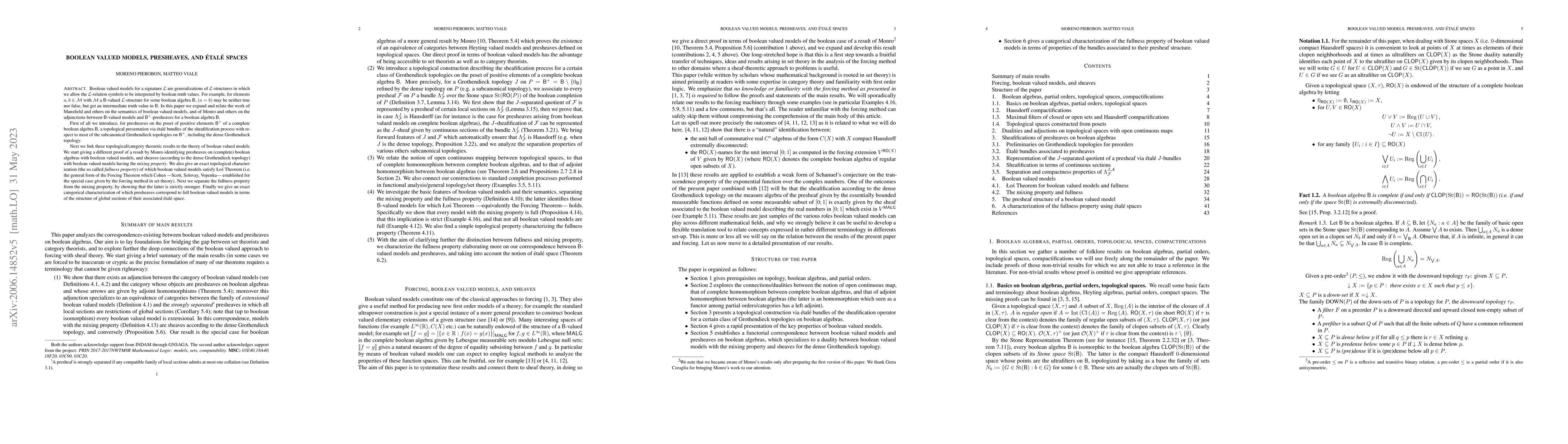 This paper explores the topological and categorical implications of Boolean valued models, establishing a connection between the sheafification process for presheaves and the dense Grothendieck topology. It also provides a new proof relating topological presheaves on Stone spaces to Boolean valued models and characterizes which models satisfy Lo's Theorem through the fullness property.
