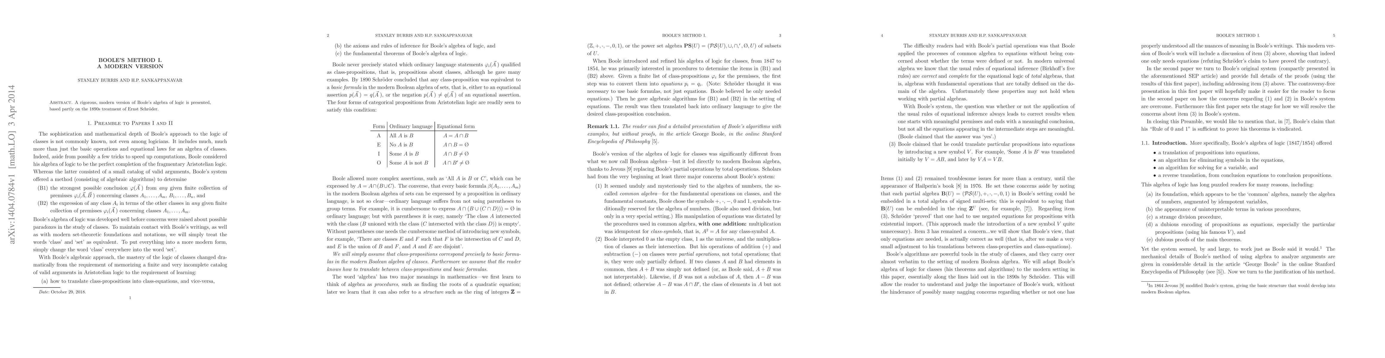Summary: This paper presents a contemporary and rigorous adaptation of Boole's algebra of logic, incorporating insights from Ernst Schröder's 1890s treatment to modernize the foundational principles of Boolean algebra.