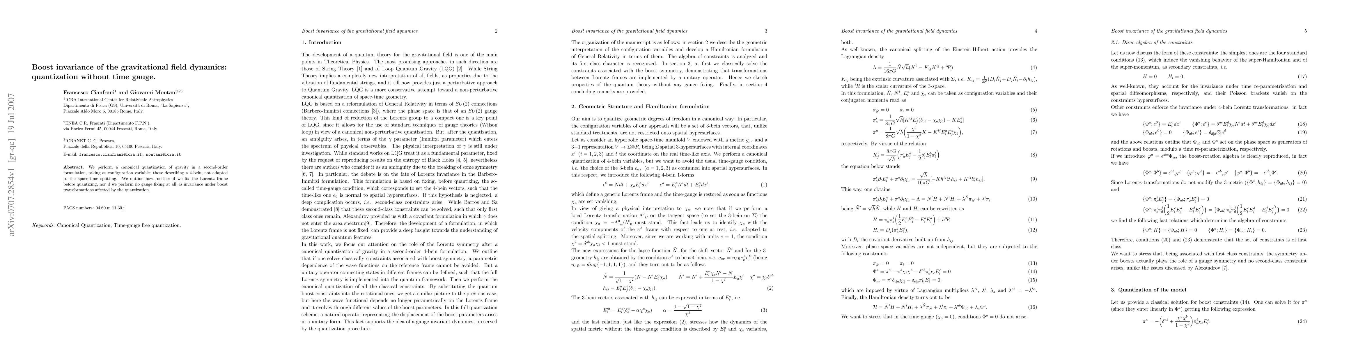 We perform a canonical quantization of gravity in a second-order formulation, taking as configuration variables those describing a 4-bein, not adapted to the space-time splitting. We outline how, neither if we fix the Lorentz frame before quantizing, nor if we perform no gauge fixing at all, is invariance under boost transformations affected by the quantization.