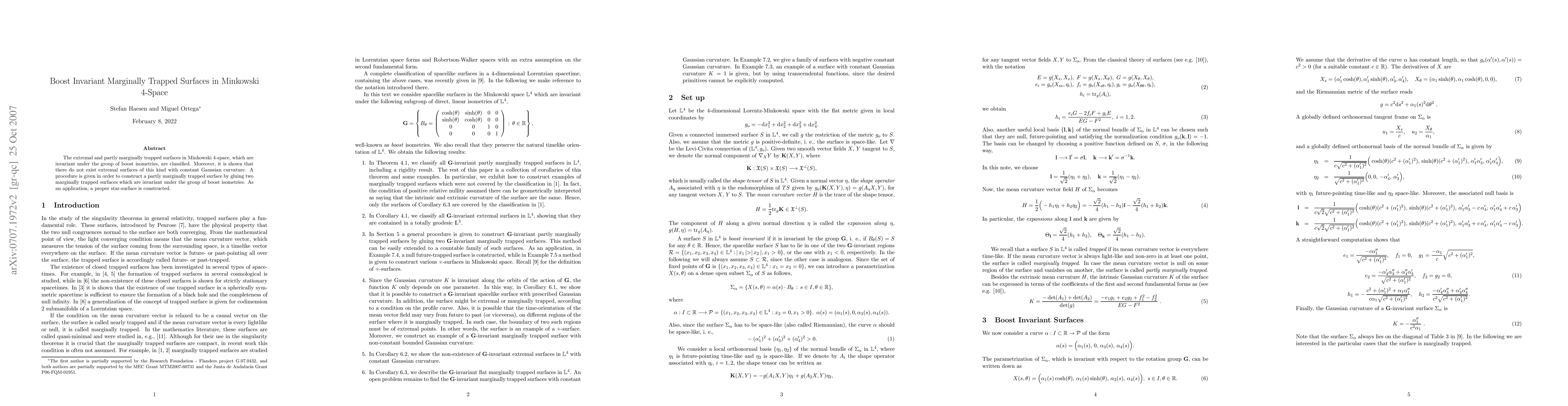 The extremal and partly marginally trapped surfaces in Minkowski 4-space, which are invariant under the group of boost isometries, are classified. Moreover, it is shown that there do not exist extremal surfaces of this kind with constant Gaussian curvature. A procedure is given in order to construct a partly marginally trapped surface by gluing two marginally trapped surfaces which are invariant under the group of boost isometries. As an application, a proper star-surface is constructed.