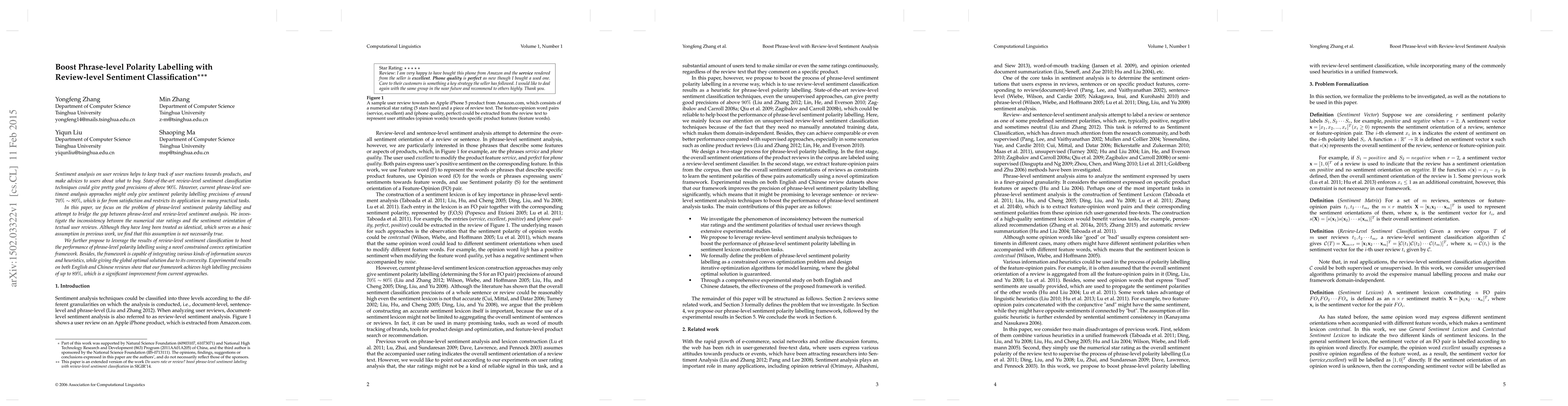 Sentiment analysis on user reviews helps to keep track of user reactions towards products, and make advices to users about what to buy. State-of-the-art review-level sentiment classification techniques could give pretty good precisions of above 90%. However, current phrase-level sentiment analysis approaches might only give sentiment polarity labelling precisions of around 70%~80%, which is far from satisfaction and restricts its application in many practical tasks. In this paper, we focus on the problem of phrase-level sentiment polarity labelling and attempt to bridge the gap between phrase-level and review-level sentiment analysis. We investigate the inconsistency between the numerical star ratings and the sentiment orientation of textual user reviews. Although they have long been treated as identical, which serves as a basic assumption in previous work, we find that this assumption is not necessarily true. We further propose to leverage the results of review-level sentiment classification to boost the performance of phrase-level polarity labelling using a novel constrained convex optimization framework. Besides, the framework is capable of integrating various kinds of information sources and heuristics, while giving the global optimal solution due to its convexity. Experimental results on both English and Chinese reviews show that our framework achieves high labelling precisions of up to 89%, which is a significant improvement from current approaches.