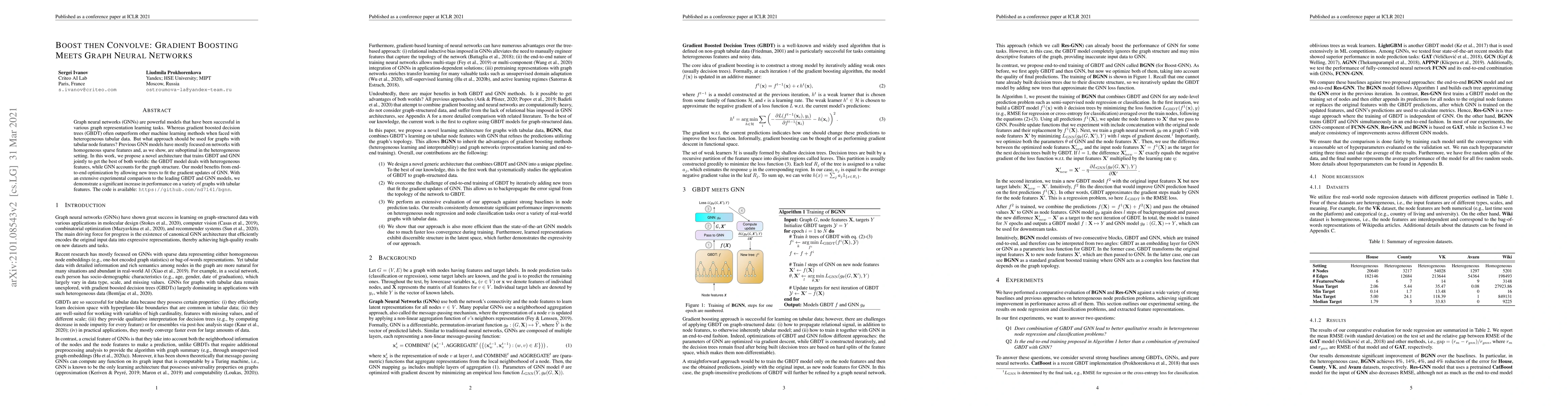 This paper proposes a novel architecture that jointly trains gradient boosted decision trees (GBDT) and graph neural networks (GNN) to leverage the strengths of both for graphs with tabular node features. The model significantly improves performance over existing GNN and GBDT models in heterogeneous settings.
