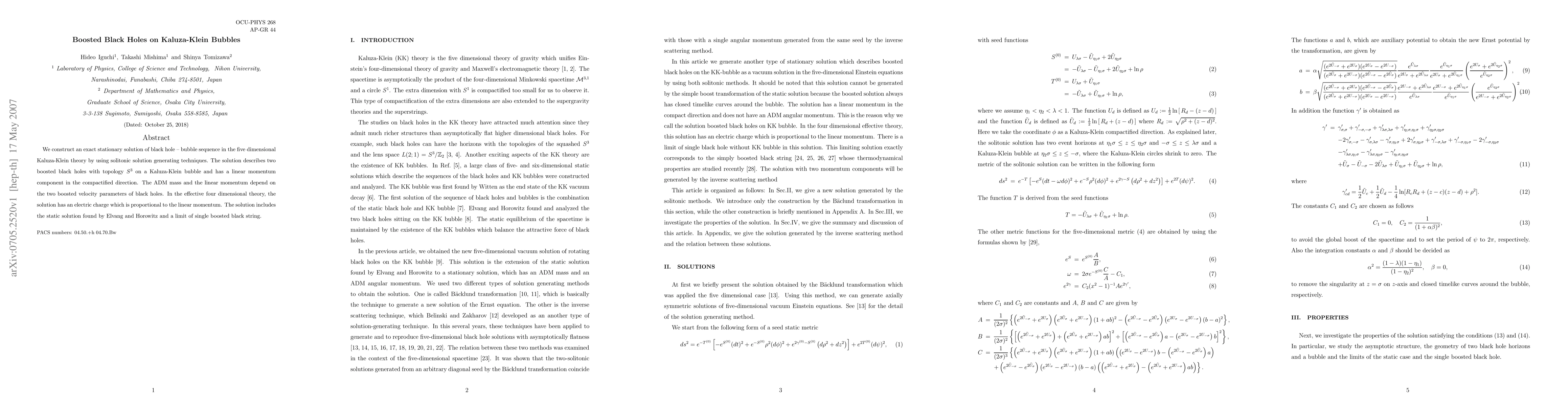 This paper presents an exact stationary solution for two boosted black holes on a Kaluza-Klein bubble in five-dimensional theory, featuring topology S^3 and linear momentum in the compactified dimension. The ADM mass and linear momentum are functions of the black holes' velocities, and the solution includes an electric charge proportional to the linear momentum.